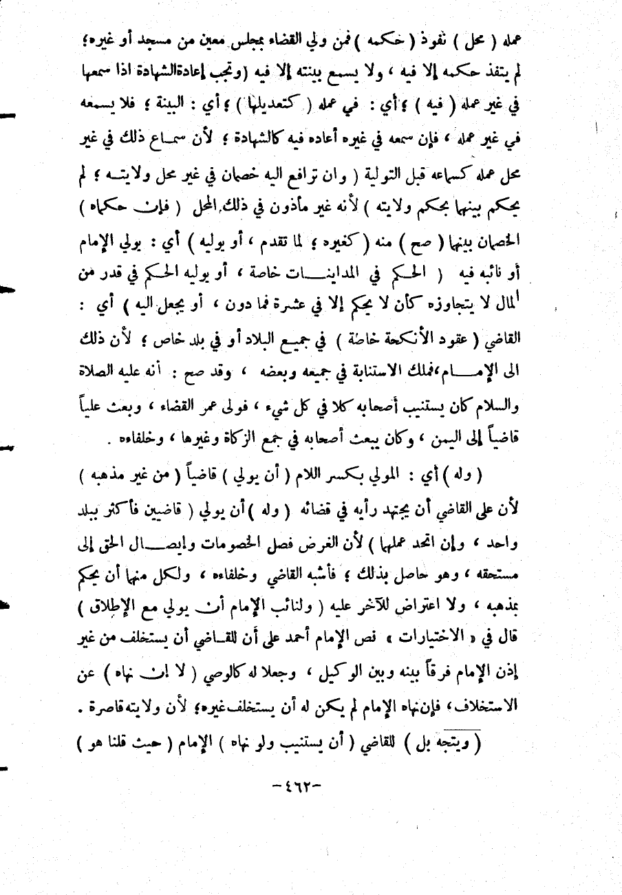 قَالَ فِي " الِاخْتِيَارَاتِ " نَصَّ الْإِمَامُ أَحْمَدُ عَلَى أَنَّ لِلْقَاضِي أَنْ يَسْتَخْلِفَ مِنْ غَيْرِ إذْنِ الْإِمَامِ فَرْقًا بَيْنَهُ وَبَيْنَ الْوَكِيلِ، وَجَعْلًا لَهُ كَالْوَصِيِّ (لَا إنْ نَهَاهُ) عَنْ الِاسْتِخْلَافِ، فَإِنْ نَهَاهُ الْإِمَامُ لَمْ يَكُنْ لَهُ أَنْ يَسْتَخْلِفَ غَيْرَهُ؛ لِأَنَّ وِلَايَتَهُ قَاصِرَةٌ.
