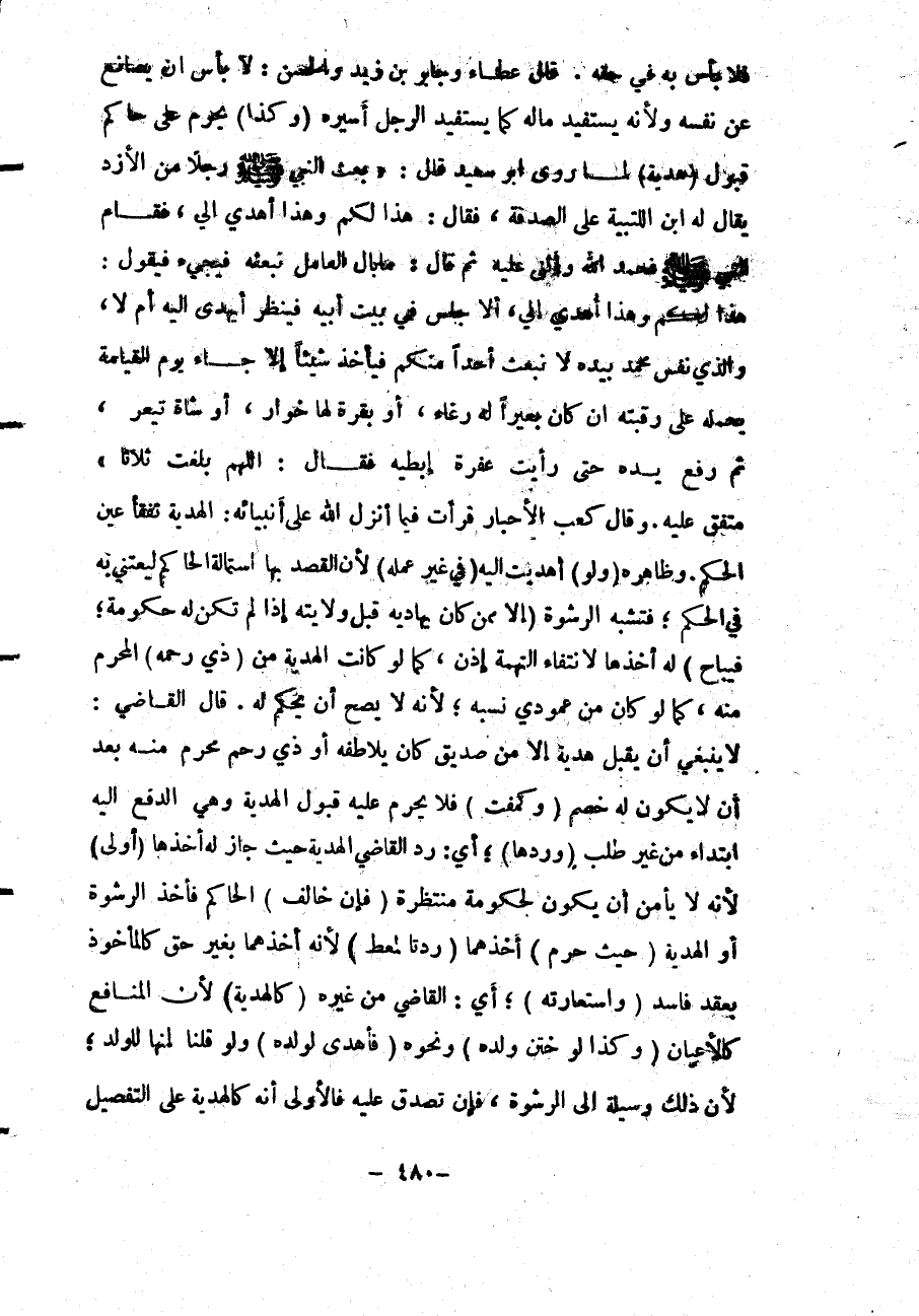 (وَكَذَا) يَحْرُمُ عَلَى حَاكِمٍ قَبُولُ (هَدِيَّةٍ) لِمَا رَوَى أَبُو سَعِيدٍ قَالَ: «بَعَثَ النَّبِيُّ - صَلَّى اللَّهُ عَلَيْهِ وَسَلَّمَ - رَجُلًا مِنْ الْأَزْدِ يُقَالُ لَهُ ابْنُ اللُّتْبِيَّةِ عَلَى الصَّدَقَةِ، فَقَالَ: هَذَا لَكُمْ وَهَذَا أُهْدِيَ إلَيَّ، فَقَامَ النَّبِيُّ - صَلَّى اللَّهُ عَلَيْهِ وَسَلَّمَ - فَحَمِدَ اللَّهَ وَأَثْنَى عَلَيْهِ ثُمَّ قَالَ: مَا بَالُ الْعَامِلِ نَبْعَثُهُ فَيَجِيءُ فَيَقُولُ: هَذَا لَكُمْ وَهَذَا أُهْدِيَ إلَيَّ، أَلَا جَلَسَ فِي بَيْتِ أَبِيهِ فَيَنْظُرُ أَيُهْدَى إلَيْهِ أَمْ لَا، وَاَلَّذِي نَفْسُ مُحَمَّدٍ بِيَدِهِ لَا نَبْعَثُ أَحَدًا مِنْكُمْ فَيَأْخُذُ شَيْئًا إلَّا جَاءَ يَوْمَ الْقِيَامَةِ يَحْمِلُهُ عَلَى رَقَبَتِهِ إنْ كَانَ بَعِيرًا لَهُ رُغَاءٌ، أَوْ بَقَرَةً لَهَا خُوَارٌ، أَوْ شَاةً تَيْعَرُ، ثُمَّ رَفَعَ يَدَهُ حَتَّى رَأَيْتُ عُفْرَةَ إبْطَيْهِ فَقَالَ: اللَّهُمَّ بَلَّغْتُ ثَلَاثًا» مُتَّفَقٌ عَلَيْهِ. وَقَالَ كَعْبُ الْأَحْبَارِ قَرَأْتُ فِيمَا أَنْزَلَ اللَّهُ عَلَى أَنْبِيَائِهِ: الْهَدِيَّةُ تَفْقَأُ عَيْنَ الْحُكْمِ. وَظَاهِرُهُ (وَلَوْ) أُهْدِيَتْ إلَيْهِ (فِي غَيْرِ عَمَلِهِ) لِأَنَّ الْقَصْدَ بِهَا اسْتِمَالَةُ الْحَاكِمِ لِيَعْتَنِيَ بِهِ فِي الْحُكْمِ فَتُشْبِهُ الرِّشْوَةَ (إلَّا مِمَّنْ كَانَ يُهَادِيهِ قَبْلَ وِلَايَتِهِ إذَا لَمْ تَكُنْ لَهُ حُكُومَةٌ، فَيُبَاحُ) لَهُ أَخْذُهَا لِانْتِفَاءِ التُّهْمَةِ إذَنْ، كَمَا لَوْ كَانَتْ الْهَدِيَّةُ مِنْ (ذِي رَحِمِهِ) الْمَحْرَمِ مِنْهُ، كَمَا لَوْ كَانَ مِنْ عَمُودَيْ نَسَبِهِ؛ لِأَنَّهُ لَا يَصِحُّ أَنْ يَحْكُمَ لَهُ. قَالَ الْقَاضِي: لَا يَنْبَغِي أَنْ يَقْبَلَ هَدِيَّةً إلَّا مِنْ صَدِيقٍ كَانَ يُلَاطِفُهُ أَوْ ذِي رَحِمٍ مَحْرَمٍ مِنْهُ بَعْدَ أَنْ لَا يَكُونَ لَهُ خَصْمٌ (وَكَمُفْتٍ) فَلَا يَحْرُمُ عَلَيْهِ قَبُولُ الْهَدِيَّةِ وَهِيَ الدَّفْعُ إلَيْهِ ابْتِدَاءً مِنْ غَيْرِ طَلَبٍ (وَرَدُّهَا) ؛ أَيْ: رَدُّ الْقَاضِي الْهَدِيَّةَ حَيْثُ جَازَ لَهُ أَخْذُهَا (أَوْلَى) لِأَنَّهُ لَا يَأْمَنُ أَنْ يَكُونَ لِحُكُومَةٍ مُنْتَظَرَةٍ (فَإِنْ خَالَفَ) الْحَاكِمُ فَأَخَذَ الرِّشْوَةَ أَوْ الْهَدِيَّةَ (حَيْثُ حُرِّمَ) أَخْذُهُمَا (رُدَّتَا لِمُعْطٍ) لِأَنَّهُ أَخَذَهُمَا بِغَيْرِ حَقٍّ كَالْمَأْخُوذِ بِعَقْدٍ فَاسِدٍ (وَاسْتِعَارَتُهُ) أَيْ: الْقَاضِي مِنْ غَيْرِهِ (كَالْهَدِيَّةِ) لِأَنَّ الْمَنَافِعَ كَالْأَعْيَانِ (وَكَذَا لَوْ خَتَنَ وَلَدَهُ) وَنَحْوَهُ (فَأَهْدَى لِوَلَدِهِ) وَلَوْ قُلْنَا إنَّهَا لِلْوَلَدِ؛ لِأَنَّ ذَلِكَ وَسِيلَةٌ إلَى الرِّشْوَةِ، فَإِنْ تَصَدَّقَ عَلَيْهِ فَالْأَوْلَى أَنَّهُ كَالْهَدِيَّةِ عَلَى التَّفْصِيلِ.