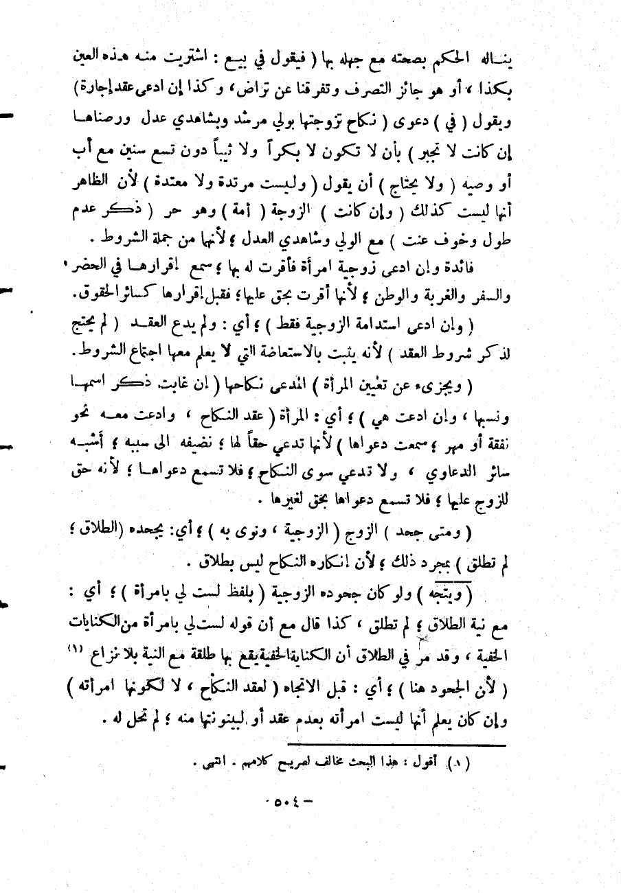 (وَمَتَى جَحَدَ) الزَّوْجُ (الزَّوْجِيَّةَ، وَنَوَى بِهِ) أَيْ: بِجَحْدِهِ (الطَّلَاقَ؛ لَمْ تَطْلُقْ) بِمُجَرَّدِ ذَلِكَ؛ لِأَنَّ إنْكَارَهُ النِّكَاحَ لَيْسَ بِطَلَاقٍ (وَيُتَّجَهُ) ، وَلَوْ كَانَ جُحُودُهُ الزَّوْجِيَّةَ (بِلَفْظِ لَسْت لِي بِامْرَأَةٍ) أَيْ: مَعَ نِيَّةِ الطَّلَاقِ؛ لَمْ تَطْلُقْ، كَذَا قَالَ مَعَ أَنَّ قَوْلَهُ لَسْتِ لِي بِامْرَأَةٍ مِنْ الْكِنَايَاتِ الْخَفِيَّةِ، وَقَدْ مَرَّ فِي الطَّلَاقِ أَنَّ الْكِنَايَةَ الْخَفِيَّةَ يَقَعُ بِهَا طَلْقَةٌ مَعَ النِّيَّةِ بِلَا نِزَاعٍ (لِأَنَّ الْجُحُودَ هُنَا) أَيْ: قَبْلَ الِاتِّجَاهِ (لِعَقْدِ النِّكَاحِ، لَا لِكَوْنِهَا امْرَأَتَهُ) وَإِنْ كَانَ يَعْلَمُ أَنَّهَا لَيْسَتْ امْرَأَتَهُ بِعَدَمِ عَقْدٍ أَوْ لِبَيْنُونَتِهَا مِنْهُ؛ لَمْ تَحِلَّ لَهُ.