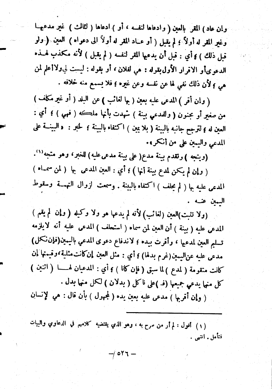 (وَلَا تَثْبُتُ) الْعَيْنُ (لِغَائِبٍ) لِأَنَّهُ لَمْ يَدَّعِهَا هُوَ وَلَا وَكِيلُهُ (وَإِنْ لَمْ يُقِمْ) الْمُدَّعَى عَلَيْهِ (بَيِّنَةً) أَنَّ الْعَيْنَ لِمَنْ سَمَّاهُ (اُسْتُحْلِفَ) الْمُدَّعَى عَلَيْهِ أَنَّهُ لَا يَلْزَمُهُ تَسْلِيمُ الْعَيْنِ لِمُدَّعِيهَا، وَأُقِرَّتْ بِيَدِهِ؛ لِانْدِفَاعِ دَعْوَى الْمُدَّعِي بِالْيَمِينِ (فَإِنْ نَكَلَ) مُدَّعًى عَلَيْهِ عَنْ الْيَمِينِ (غَرِمَ بَدَلَهَا) ؛ أَيْ: مِثْلَ الْعَيْنِ إنْ كَانَتْ مِثْلِيَّةً، وَقِيمَتَهَا إنْ كَانَتْ مُتَقَوِّمَةً (لِمُدَّعٍ) لِمَا سَبَقَ (فَإِنْ كَانَا) ؛ أَيْ: الْمُدَّعِيَانِ لَهَا (اثْنَيْنِ) كُلّ مِنْهُمَا يَدَّعِي جَمِيعَهَا (فَ) عَلَى نَاكِلٍ (بَدَلَانِ) لِكُلٍّ مِنْهُمَا بَدَلٌ.