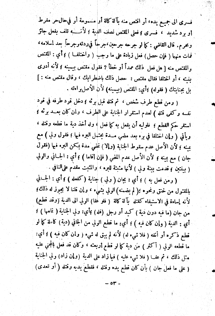 فَسَرَى إلَى جَمِيعِ يَدِهِ، أَوْ اقْتَصَّ مِنْهُ بِآلَةٍ كَالَّةٍ أَوْ مَسْمُومَةٍ أَوْ فِي حَالِ حَرٍّ مُفْرِطٍ أَوْ بَرْدٍ شَدِيدٍ، فَسَرَى؛ فَعَلَى الْمُقْتَصِّ نِصْفُ الدِّيَةِ؛ لِأَنَّهُ تَلِفَ بِفِعْلٍ جَائِزٍ وَمُحَرَّمٍ