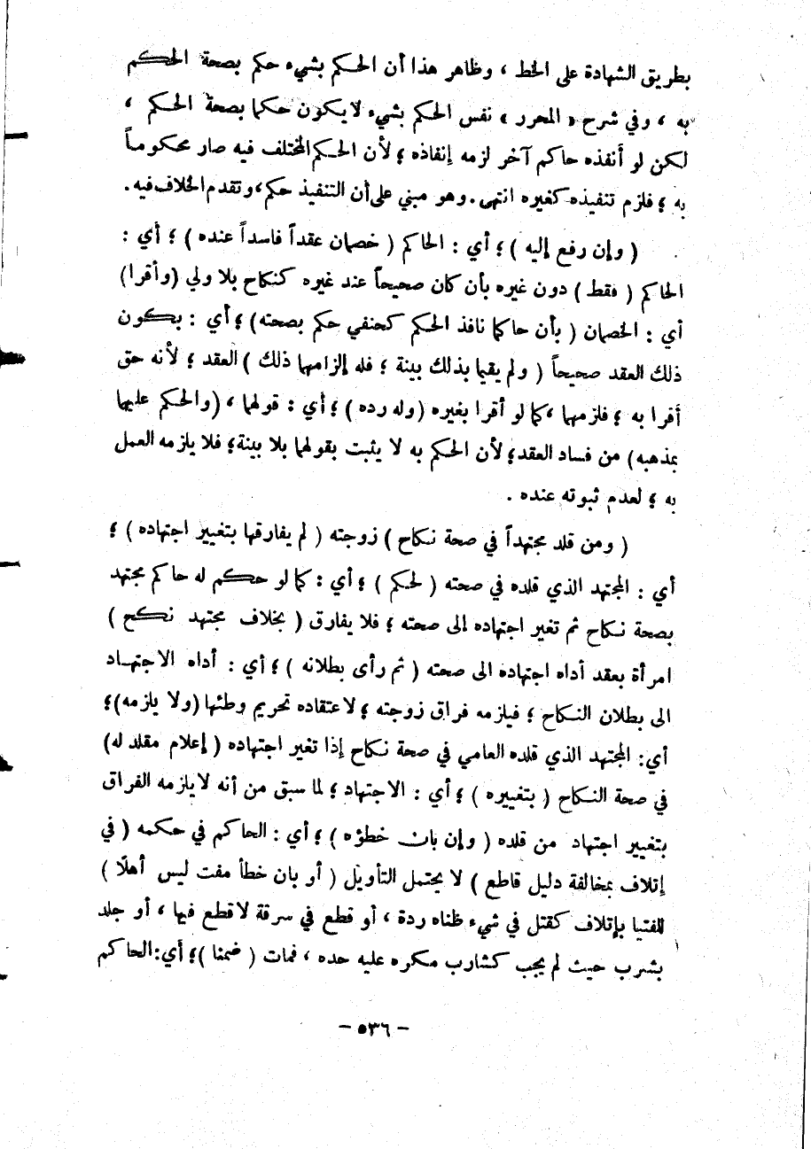 بِطَرِيقِ الشَّهَادَةِ عَلَى الْخَطِّ، وَظَاهِرُ هَذَا أَنَّ الْحُكْمَ بِشَيْءٍ حُكْمٌ بِصِحَّةِ الْحُكْمِ بِهِ، وَفِي شَرْحِ الْمُحَرَّرِ " نَفْسُ الْحُكْمِ بِشَيْءٍ لَا يَكُونُ حُكْمًا بِصِحَّةِ الْحُكْمِ، لَكِنْ لَوْ أَنْفَذَهُ حَاكِمٌ آخَرُ لَزِمَهُ إنْفَاذُهُ؛ لِأَنَّ الْحُكْمَ الْمُخْتَلَفَ فِيهِ صَارَ مَحْكُومًا بِهِ؛ فَلَزِمَ تَنْفِيذُهُ كَغَيْرِهِ انْتَهَى.