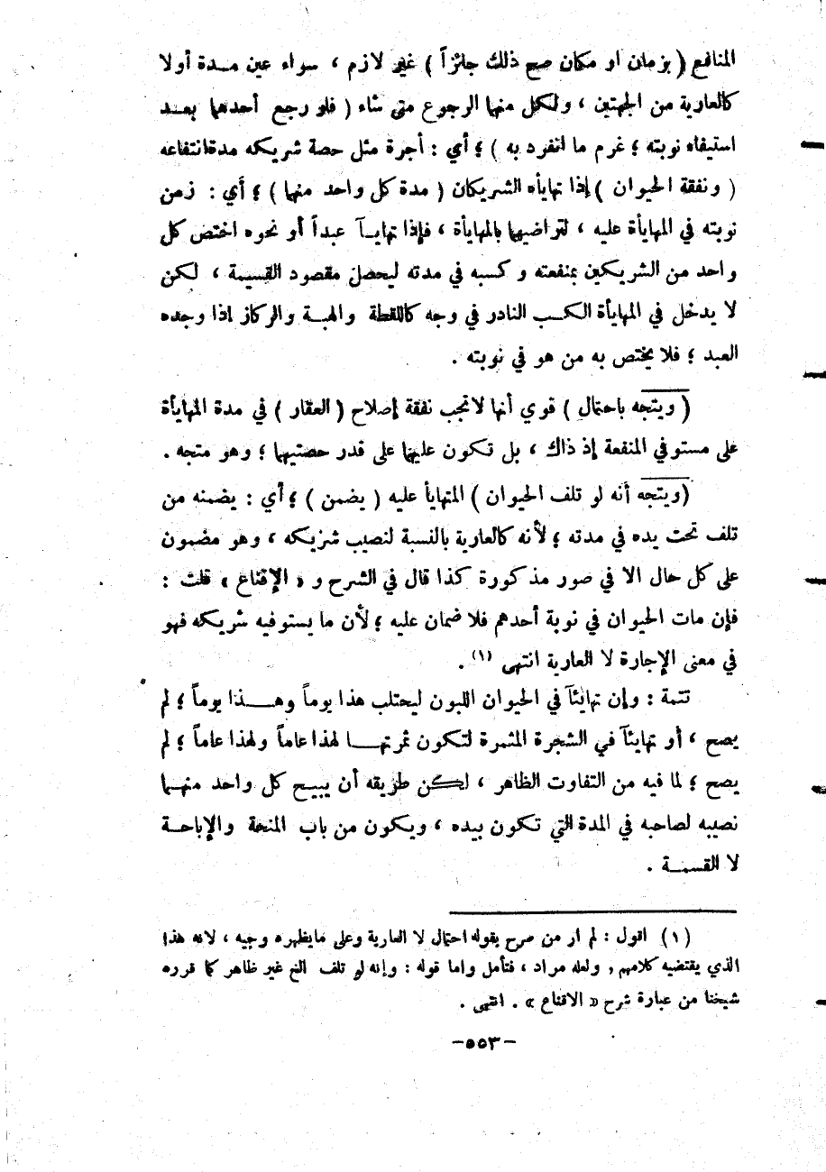 (وَيَتَّجِهُ أَنَّهُ لَوْ تَلِفَ الْحَيَوَانُ) الْمُتَهَايَأُ عَلَيْهِ (يَضْمَنُ) ؛ أَيْ: يَضْمَنُهُ مَنْ تَلِفَ تَحْتَ يَدِهِ فِي مُدَّتِهِ؛ لِأَنَّهُ كَالْعَارِيَّةِ بِالنِّسْبَةِ لِنَصِيبِ شَرِيكِهِ، وَهُوَ مَضْمُونٌ عَلَى كُلِّ حَالٍ إلَّا فِي صُوَرٍ مَذْكُورَةٍ كَذَا قَالَ فِي الشَّرْحِ وَ " الْإِقْنَاعِ " قُلْتُ: فَإِنْ مَاتَ الْحَيَوَانُ فِي نَوْبَةِ أَحَدِهِمْ فَلَا ضَمَانَ عَلَيْهِ؛ لِأَنَّ مَا يَسْتَوْفِيه شَرِيكُهُ فَهُوَ فِي مَعْنَى الْإِجَارَةِ لَا الْعَارِيَّةِ انْتَهَى.