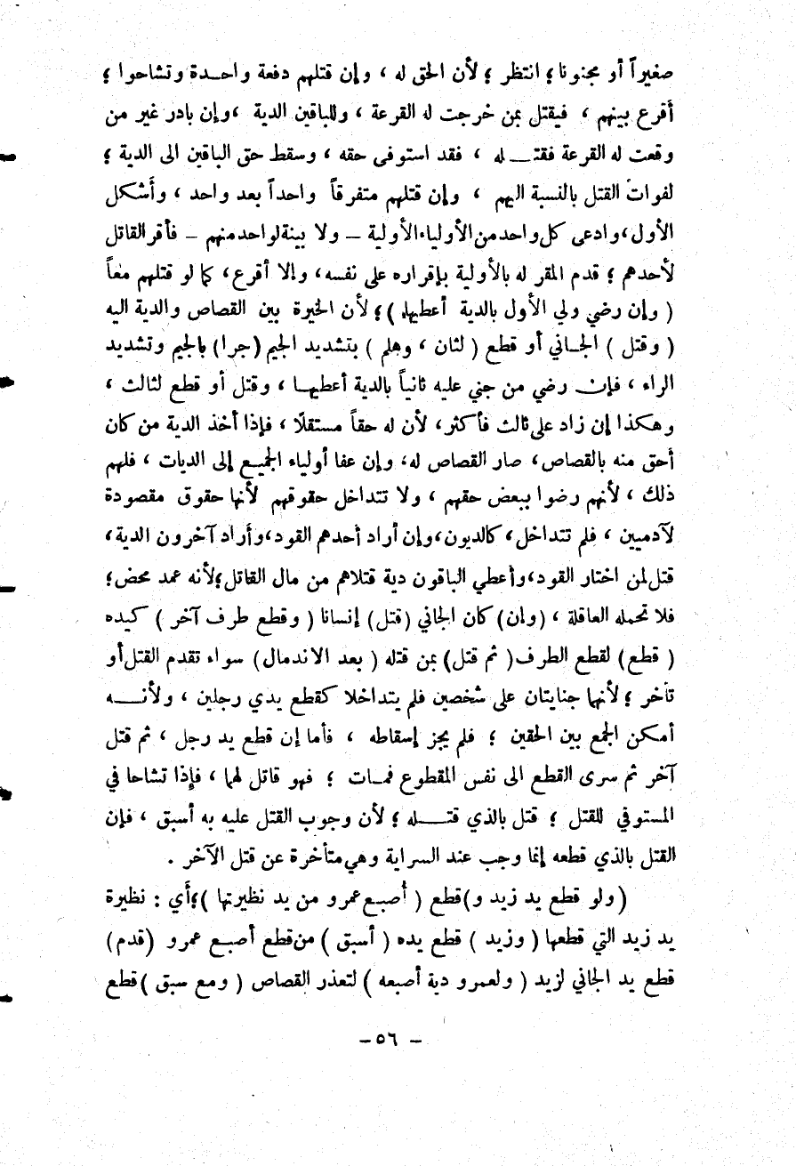 صَغِيرًا أَوْ مَجْنُونًا؛ اُنْتُظِرَ؛ لِأَنَّ الْحَقَّ لَهُ، وَإِنْ قَتَلَهُمْ دُفْعَةً وَاحِدَةً وَتَشَاحُّوا؛ أُقْرِعَ بَيْنَهُمْ، فَيُقْتَلُ بِمَنْ خَرَجَتْ لَهُ الْقُرْعَةُ، وَلِلْبَاقِينَ الدِّيَةُ، وَإِنْ بَادَرَ غَيْرُ مَنْ وَقَعَتْ لَهُ الْقُرْعَةُ فَقَتَلَهُ، فَقَدْ اسْتَوْفَى حَقَّهُ، وَسَقَطَ حَقُّ الْبَاقِينَ إلَى الدِّيَةِ؛ لِفَوَاتِ الْقَتْلِ بِالنِّسْبَةِ إلَيْهِمْ وَإِنْ قَتَلَهُمْ مُتَفَرِّقًا وَاحِدًا بَعْدَ وَاحِدٍ، وَأُشْكِلَ الْأَوَّلُ، وَادَّعَى كُلُّ وَاحِدٍ مِنْ الْأَوْلِيَاءِ الْأَوَّلِيَّةَ - وَلَا بَيِّنَةَ لِوَاحِدٍ مِنْهُ - فَأَقَرَّ الْقَاتِلُ لِأَحَدِهِمْ؛ قُدِّمَ الْمُقَرُّ لَهُ بِالْأَوَّلِيَّةِ بِإِقْرَارِهِ عَلَى نَفْسِهِ، وَإِلَّا أَقْرَعَ، كَمَا لَوْ قَتَلَهُمْ مَعًا (وَإِنْ رَضِيَ وَلِيُّ الْأَوَّلِ بِالدِّيَةِ أُعْطِيهَا) ؛ لِأَنَّ الْخِيَرَةَ بَيْنَ الْقِصَاصِ وَالدِّيَةِ إلَيْهِ (وَقَتْلُ) الْجَانِي أَوْ قَطْعٌ (لِثَانٍ، وَهَلُمَّ) بِتَشْدِيدِ الْمِيمِ (جَرَّا) بِالْجِيمِ وَتَشْدِيدِ الرَّاءِ، فَإِنْ رَضِيَ مَنْ جُنِيَ عَلَيْهِ ثَانِيًا بِالدِّيَةِ أُعْطِيهَا، وَقُتِلَ أَوْ قُطِعَ لِثَالِثٍ، وَهَكَذَا إنْ زَادَ عَلَى ثَالِثٍ فَأَكْثَرَ؛ لِأَنَّ لَهُ حَقًّا مُسْتَقِلًّا، فَإِذَا أَخَذَ الدِّيَةَ مَنْ كَانَ أَحَقَّ مِنْهُ بِالْقِصَاصِ، صَارَ الْقِصَاصُ لَهُ، وَإِنْ عَفَا أَوْلِيَاءُ الْجَمِيعِ إلَى الدِّيَاتِ، فَلَهُمْ ذَلِكَ، لِأَنَّهُمْ رَضُوا بِبَعْضِ حَقِّهِمْ، وَلَا تَتَدَاخَلُ حُقُوقُهُمْ؛ لِأَنَّهَا حُقُوقٌ مَقْصُودَةٌ لِآدَمِيِّينَ، فَلَمْ تَتَدَاخَلْ، كَالدُّيُونِ، وَإِنْ أَرَادَ أَحَدُهُمْ الْقَوَدَ، وَأَرَادَ آخَرُونَ الدِّيَةَ، قُتِلَ لِمَنْ اخْتَارَ الْقَوَدَ، وَأُعْطِيَ الْبَاقُونَ دِيَةَ قَتْلَاهُمْ مِنْ مَالِ الْقَاتِلِ؛ لِأَنَّهُ عَمْدٌ مَحْضٌ؛ فَلَا تَحْمِلُهُ الْعَاقِلَةُ، (وَإِنْ) كَانَ الْجَانِي (قَتَلَ) إنْسَانًا (وَقَطَعَ طَرَفَ آخَرَ) كَيَدِهِ (قُطِعَ) لِقَطْعِ الطَّرَفِ (ثُمَّ قُتِلَ) بِمَنْ قَتَلَهُ (بَعْدَ الِانْدِمَالِ) سَوَاءً تَقَدَّمَ الْقَتْلُ أَوْ تَأَخَّرَ؛ لِأَنَّهُمَا جِنَايَتَانِ عَلَى شَخْصَيْنِ فَلَمْ يَتَدَاخَلَا كَقَطْعِ يَدَيْ رَجُلَيْنِ؛ وَلِأَنَّهُ أَمْكَنَ الْجَمْعُ بَيْنَ الْحَقَّيْنِ؛ فَلَمْ يَجُزْ إسْقَاطُهُ، فَأَمَّا إنْ قَطَعَ يَدَ رَجُلٍ، ثُمَّ قَتَلَ آخَرَ ثُمَّ سَرَى الْقَطْعُ إلَى نَفْسِ الْمَقْطُوعِ فَمَاتَ، فَهُوَ قَاتِلٌ لَهُمَا، فَإِذَا تَشَاحَّا فِي الْمُسْتَوْفِي لِلْقَتْلِ؛ قُتِلَ بِاَلَّذِي قَتَلَهُ؛ لِأَنَّ وُجُوبَ الْقَتْلِ عَلَيْهِ بِهِ أَسْبِقُ، فَإِنَّ الْقَتْلَ بِاَلَّذِي قَطَعَهُ إنَّمَا وَجَبَ عَنْهُ السِّرَايَةُ وَهِيَ مُتَأَخِّرَةٌ عَنْ قَتْلِ الْآخَرِ.