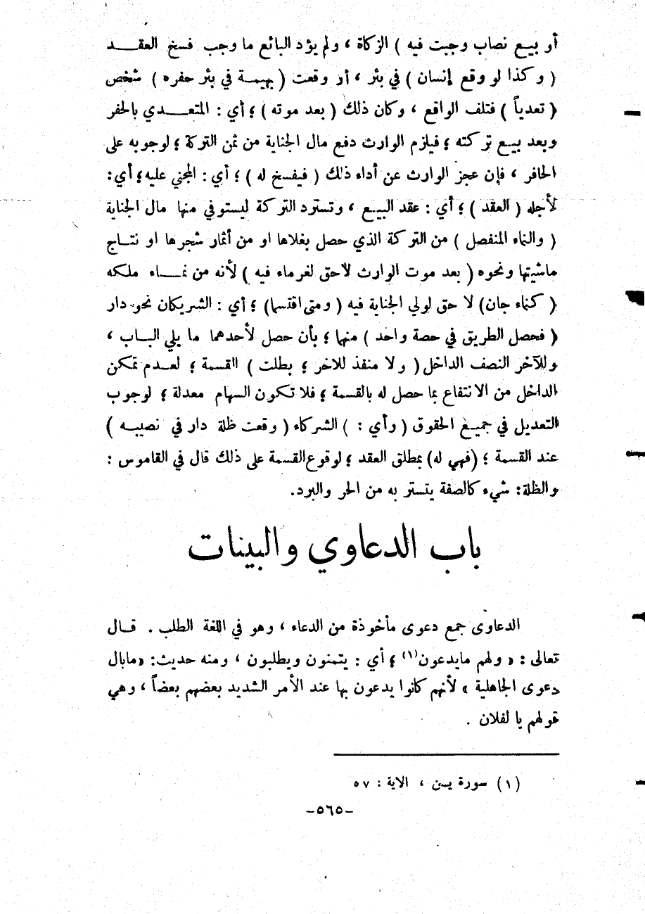 ِ الدَّعَاوَى جَمْعُ دَعْوَى مَأْخُوذَةٌ مِنْ الدُّعَاءِ، وَهُوَ فِي اللُّغَةِ الطَّلَبُ. قَالَ تَعَالَى: {وَلَهُمْ مَا يَدَّعُونَ} [يس: 57] ؛ أَيْ: يَتَمَنَّوْنَ وَيَطْلُبُونَ، وَمِنْهُ حَدِيثُ: «مَا بَالُ دَعْوَى الْجَاهِلِيَّةِ» لِأَنَّهُمْ كَانُوا يَدْعُونَ بِهَا عِنْدَ الْأَمْرِ الشَّدِيدِ بَعْضُهُمْ بَعْضًا، وَهِيَ قَوْلُهُمْ يَا لِفُلَانٍ.