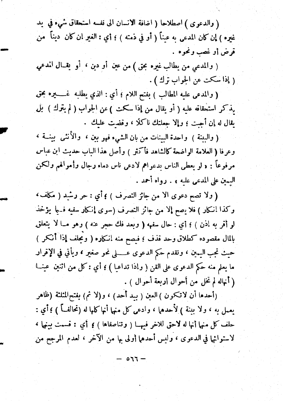 (وَالْبَيِّنَةُ) وَاحِدَةُ الْبَيِّنَاتِ مِنْ بَانَ الشَّيْءُ فَهُوَ بَيِّنٌ، وَالْأُنْثَى بَيِّنَةٌ، وَعُرْفًا (الْعَلَامَةُ الْوَاضِحَةُ كَالشَّاهِدِ فَأَكْثَرَ) وَأَصْلُ هَذَا الْبَابِ حَدِيثُ ابْنِ عَبَّاسٍ مَرْفُوعًا: «لَوْ يُعْطَى النَّاسُ بِدَعْوَاهُمْ لَادَّعَى نَاسٌ دِمَاءَ رِجَالٍ وَأَمْوَالَهُمْ وَلَكِنَّ الْيَمِينَ عَلَى الْمُدَّعَى عَلَيْهِ `» . رَوَاهُ أَحْمَدُ.