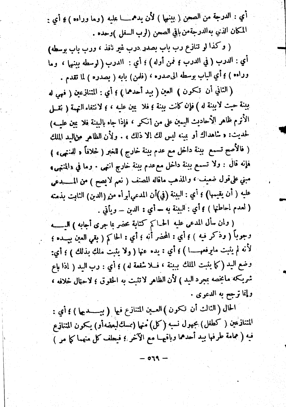 (الثَّانِي أَنْ تَكُونَ) الْعَيْنُ (بِيَدِ أَحَدِهِمَا) ؛ أَيْ: الْمُتَنَازِعَيْنِ (فَهِيَ لَهُ بَيِّنَةٌ حَيْثُ لَا بَيِّنَةَ لَهُ) فَإِنْ كَانَتْ بَيِّنَةٌ؛ فَلَا يَمِينَ عَلَيْهِ، لِانْتِفَاءِ التُّهْمَةِ (نَقَلَ الْأَثْرَمُ ظَاهِرَ الْأَحَادِيثِ الْيَمِينُ عَلَى مَنْ أَنْكَرَ، فَإِذَا جَاءَ بِالْبَيِّنَةِ فَلَا يَمِينَ عَلَيْهِ) لِحَدِيثِ: «شَاهِدَاكَ أَوْ يَمِينُهُ لَيْسَ لَك إلَّا ذَلِكَ» .