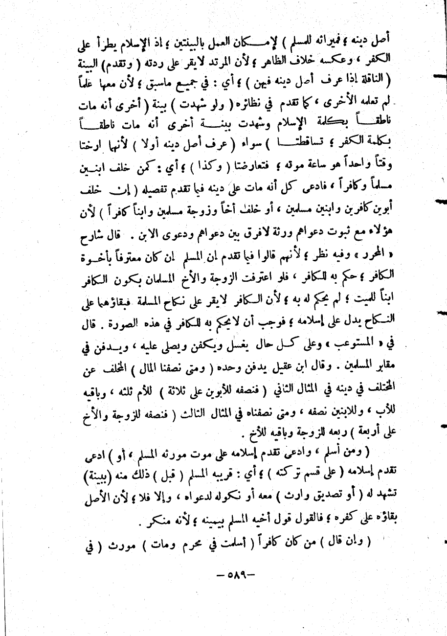 قَالَ شَارِحُ " الْمُحَرَّرِ " وَفِيهِ نَظَرٌ، لِأَنَّهُمْ قَالُوا فِيمَا تَقَدَّمَ إنَّ الْمُسْلِمَ إنْ كَانَ مُعْتَرِفًا بِأُخُوَّةِ الْكَافِرِ، حُكِمَ بِهِ لِلْكَافِرِ، فَلَوْ اعْتَرَفَتْ الزَّوْجَةُ وَالْأَخُ الْمُسْلِمَانِ بِكَوْنِ الْكَافِرِ ابْنًا لِلْمَيِّتِ، لَمْ يُحْكَمْ لَهُ بِهِ، لِأَنَّ الْكَافِرَ لَا يُقَرُّ عَلَى نِكَاحِ الْمُسْلِمَةِ فَبَقَاؤُهُمَا عَلَى النِّكَاحِ يَدُلُّ عَلَى إسْلَامِهِ، فَوَجَبَ أَنْ لَا يُحْكَمَ بِهِ لِلْكَافِرِ فِي هَذِهِ الصُّورَةِ.