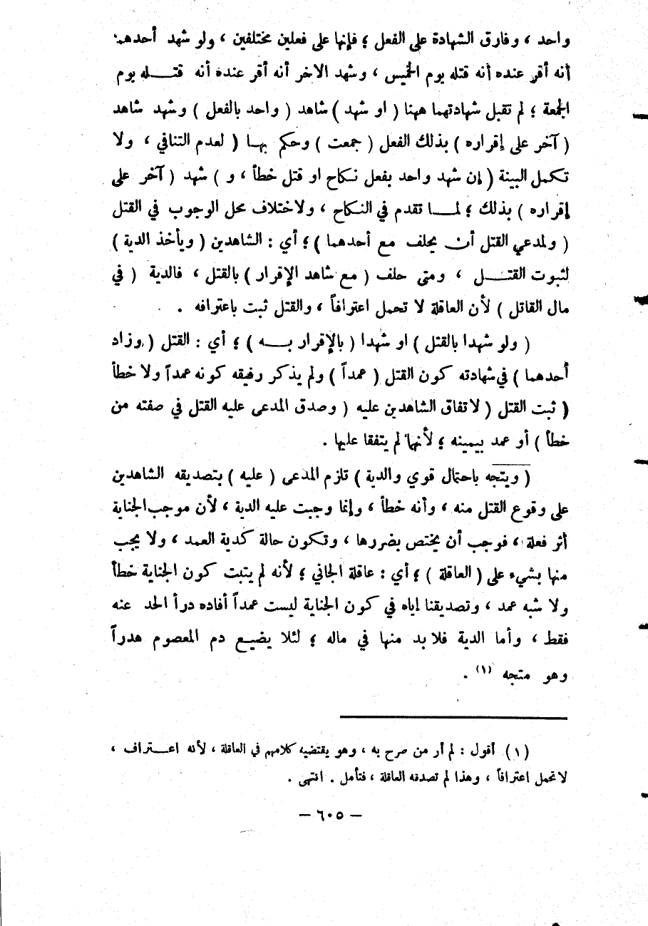 (وَلَوْ شَهِدَا بِالْقَتْلِ) أَوْ شَهِدَا (بِالْإِقْرَارِ بِهِ) ؛ أَيْ: الْقَتْلِ (وَزَادَ أَحَدُهُمَا) فِي شَهَادَتِهِ كَوْنَ الْقَتْلِ (عَمْدًا) وَلَمْ يَذْكُرْ رَفِيقُهُ كَوْنَهُ عَمْدًا وَلَا خَطَأً ثَبَتَ الْقَتْلُ لِاتِّفَاقِ الشَّاهِدَيْنِ عَلَيْهِ (وَصُدِّقَ الْمُدَّعَى عَلَيْهِ الْقَتْلُ فِي صِفَتِهِ مِنْ خَطَأٍ) أَوْ عَمْدٍ بِيَمِينِهِ؛ لِأَنَّهُمَا لَمْ يَتَّفِقَا عَلَيْهَا. (وَيَتَّجِهُ بِاحْتِمَالٍ قَوِيٍّ وَالدِّيَةُ) تَلْزَمُ الْمُدَّعَى (عَلَيْهِ) بِتَصْدِيقِهِ الشَّاهِدَيْنِ عَلَى وُقُوعِ الْقَتْلِ مِنْهُ، وَأَنَّهُ خَطَأٌ، وَإِنَّمَا وَجَبَتْ عَلَيْهِ الدِّيَةُ، لِأَنَّ مُوجِبَ الْجِنَايَةِ أَثَرُ فِعْلِهِ، فَوَجَبَ أَنْ يَخْتَصَّ بِضَرَرِهَا، وَتَكُونُ حَالُهُ كَدِيَةِ الْعَمْدِ، وَلَا يَجِبُ مِنْهَا بِشَيْءٍ عَلَى (الْعَاقِلَةِ) ؛ أَيْ: عَاقِلَةِ الْجَانِي؛ لِأَنَّهُ لَمْ يَثْبُتْ كَوْنُ الْجِنَايَةِ خَطَأً وَلَا شِبْهَ عَمْدٍ، وَتَصْدِيقُنَا إيَّاهُ فِي كَوْنِ الْجِنَايَةِ لَيْسَتْ عَمْدًا أَفَادَهُ دَرْءُ الْحَدِّ عَنْهُ فَقَطْ، وَأَمَّا الدِّيَةُ فَلَا بُدَّ مِنْهَا فِي مَالِهِ، لِئَلَّا يَضِيعَ دَمُ الْمَعْصُومِ هَدَرًا وَهُوَ مُتَّجِهٌ. .