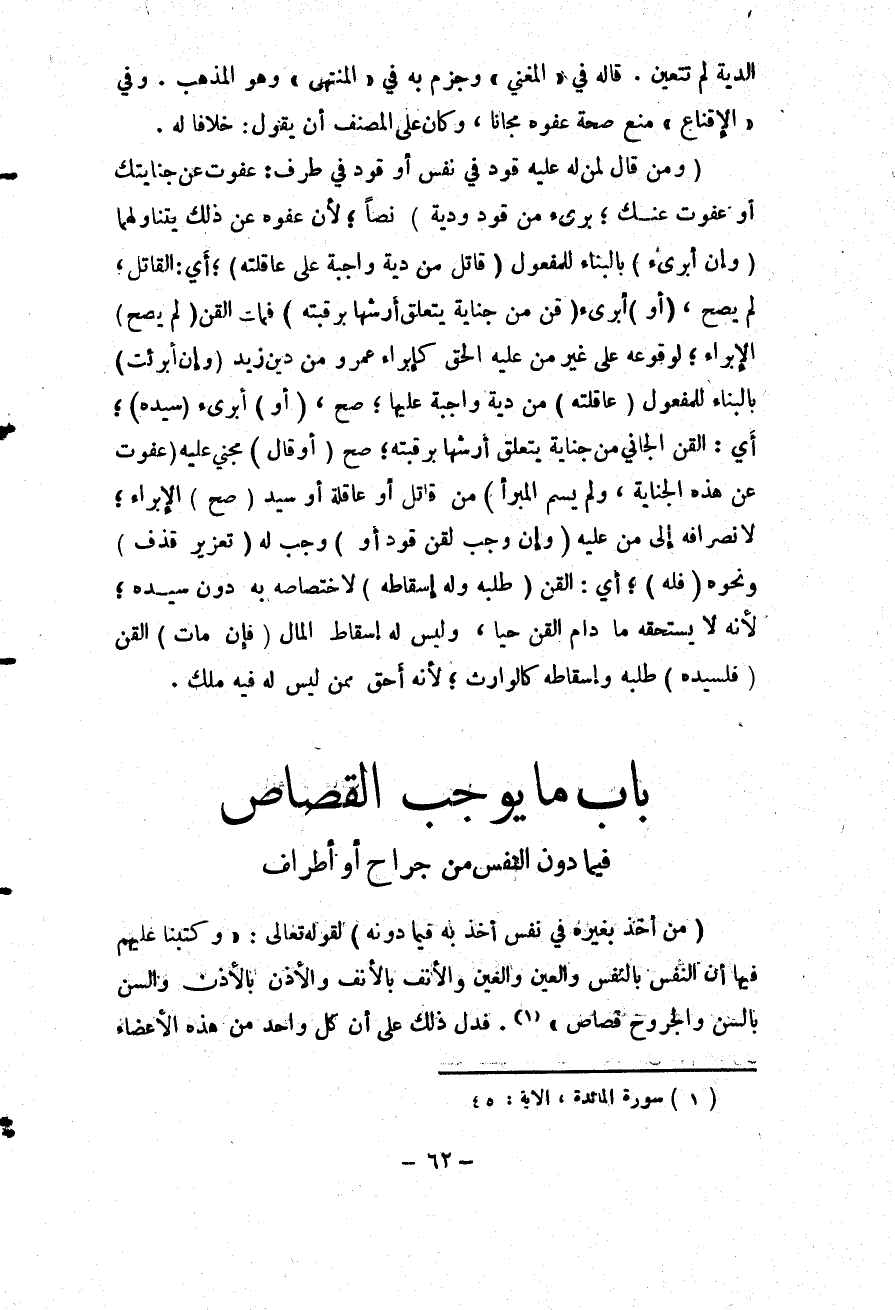 [بَابُ مَا يُوجِبُ الْقِصَاصَ فِيمَا دُونَ النَّفْسِ مِنْ جِرَاحٍ أَوْ أَطْرَافٍ]