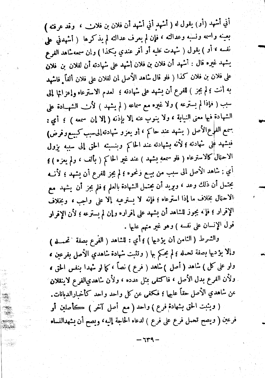 أَنِّي أَشْهَدُ (أَوْ) يَقُولَ لَهُ (أَشْهَدُ أَنِّي أَشْهَدُ أَنَّ فُلَانَ بْنَ فُلَانٍ، وَقَدْ عَرَفْته) بِعَيْنِهِ وَاسْمِهِ وَنَسَبِهِ وَعَدَالَتِهِ، فَإِنْ لَمْ يَعْرِفْ عَدَالَتَهُ لَمْ يَذْكُرْهَا (أَشْهَدَنِي عَلَى نَفْسِهِ، أَوْ) يَقُولَ (شَهِدْت عَلَيْهِ أَوْ أَقَرَّ عِنْدِي بِكَذَا) وَإِنْ سَمِعَهُ شَاهِدُ الْفَرْعِ يُشْهِدُ غَيْرَهُ قَالَ: أَشْهَدُ أَنَّ فُلَانَ بْنَ فُلَانٍ أَشْهَدَ عَلَى شَهَادَتِهِ أَنَّ لِفُلَانِ بْنِ فُلَانٍ عَلَى فُلَانِ بْنِ فُلَانٍ كَذَا.