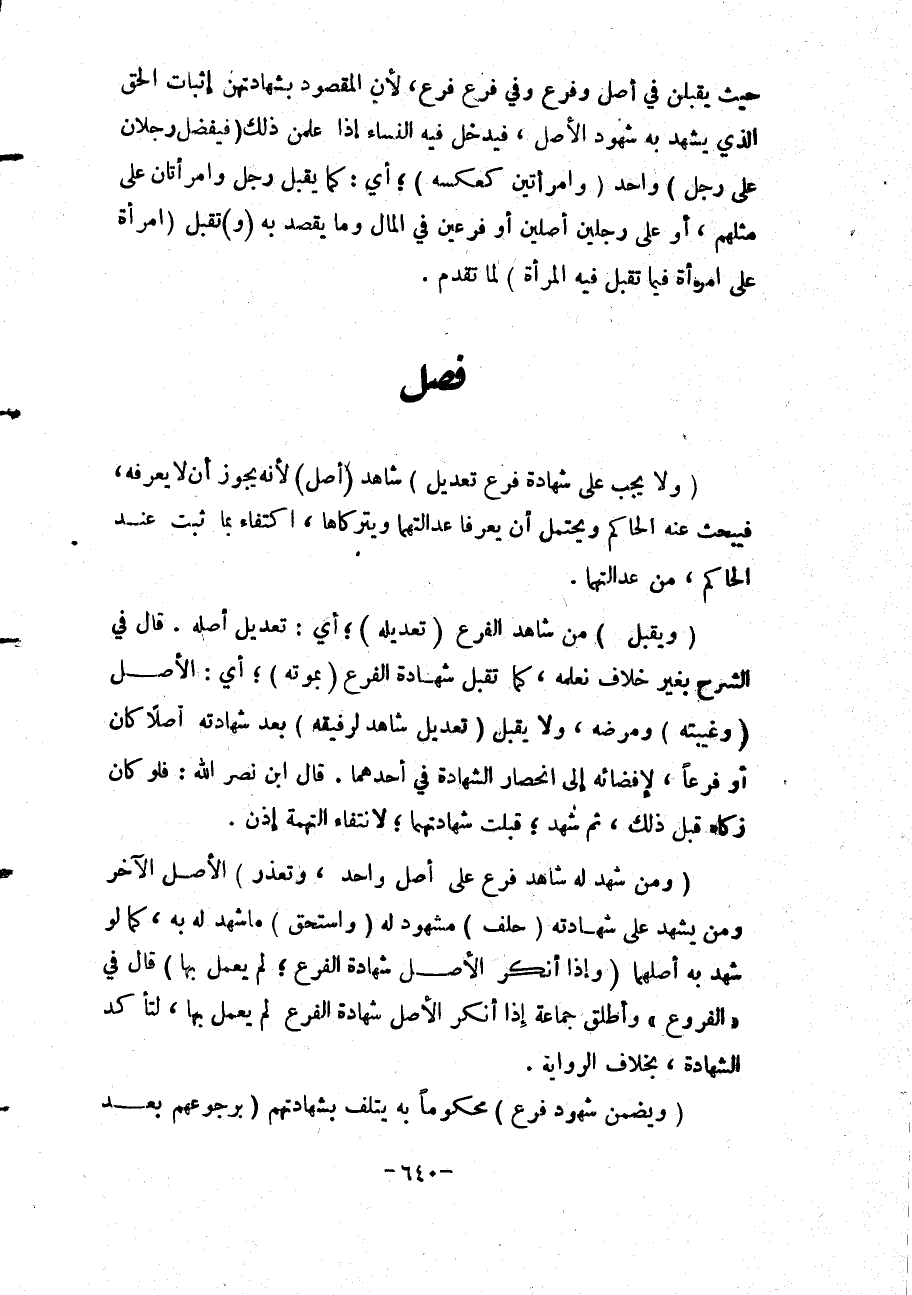 فَصْلٌ (وَلَا يَجِبُ عَلَى شَهَادَةِ فَرْعٍ تَعْدِيلُ) شَاهِدِ (أَصْلٍ) لِأَنَّهُ يَجُوزُ أَنْ لَا يَعْرِفَهُ، فَيَبْحَثُ عَنْهُ الْحَاكِمُ وَيُحْتَمَلُ أَنْ يَعْرِفَا عَدَالَتَهُمَا وَيَتْرُكَاهَا، اكْتِفَاءً بِمَا ثَبَتَ عِنْدَ الْحَاكِمِ، مِنْ عَدَالَتِهِمَا.