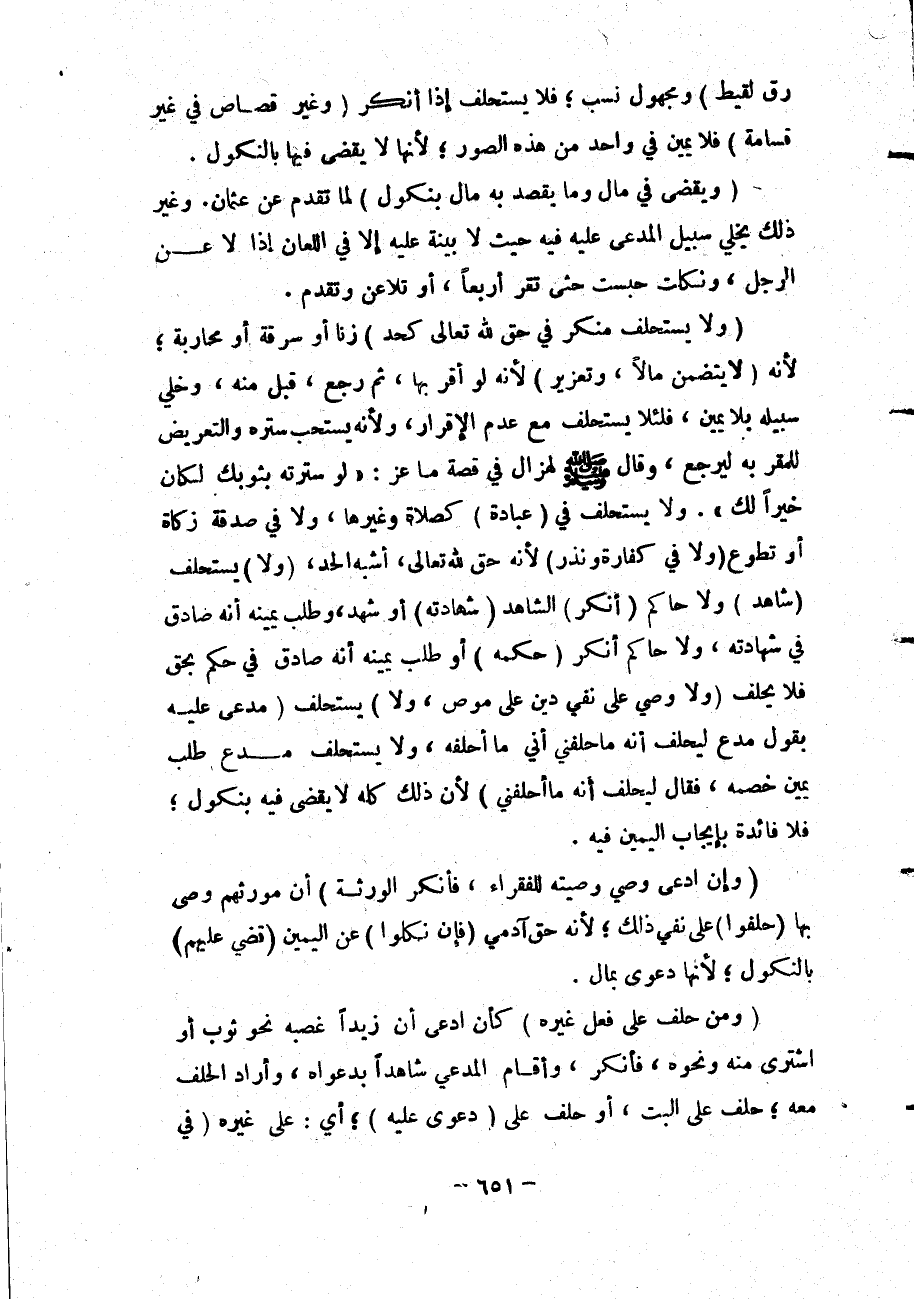 رَقِّ لَقِيطٍ) وَمَجْهُولِ نَسَبٍ؛ فَلَا يُسْتَحْلَفُ إذَا أَنْكَرَ (وَغَيْرَ قِصَاصٍ فِي غَيْرِ قَسَامَةٍ) فَلَا يَمِينَ فِي وَاحِدٍ مِنْ هَذِهِ الصُّوَرِ؛ لِأَنَّهَا لَا يُقْضَى فِيهَا بِالنُّكُولِ.