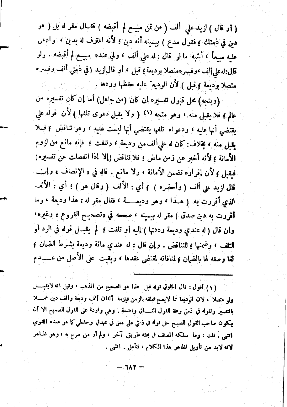 وَلَوْ قَالَ: لَهُ عَلَيَّ أَلْفٌ، وَفَسَّرَهُ مُتَّصِلًا بِوَدِيعَةٍ؛ قُبِلَ، أَوْ قَالَ لِزَيْدٍ (فِي ذِمَّتِي أَلْفٌ وَفَسَّرَهُ مُتَّصِلًا بِوَدِيعَةٍ؛ قُبِلَ) لِأَنَّ الْوَدِيعَةَ عَلَيْهِ حِفْظُهَا وَرَدُّهَا.