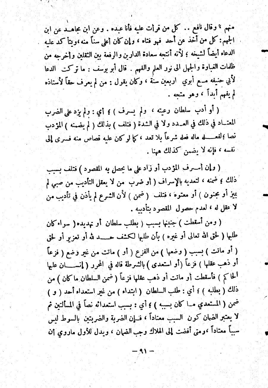 قَالَ أَبُو يُوسُفَ: مَا تَرَكْت الدُّعَاءَ لِأَبِي حَنِيفَةَ مَعَ أَبَوَيْ أَرْبَعِينَ سَنَةً؛ وَكَانَ يَقُولُ: مَنْ لَمْ يَعْرِفْ حَقًّا لِأُسْتَاذِهِ لَمْ يَفْهَمْ أَبَدًا، وَهُوَ مُتَّجِهٌ.
