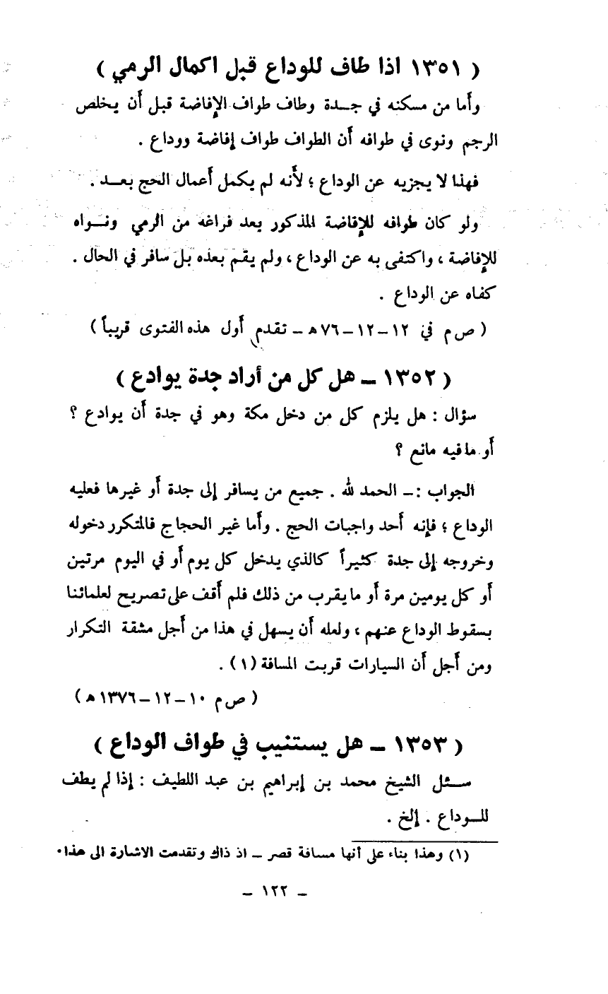 سئل الشيخ محمد بن إبراهيم بن عبد اللطيف: إذا لم يطف للوداع. إلخ.