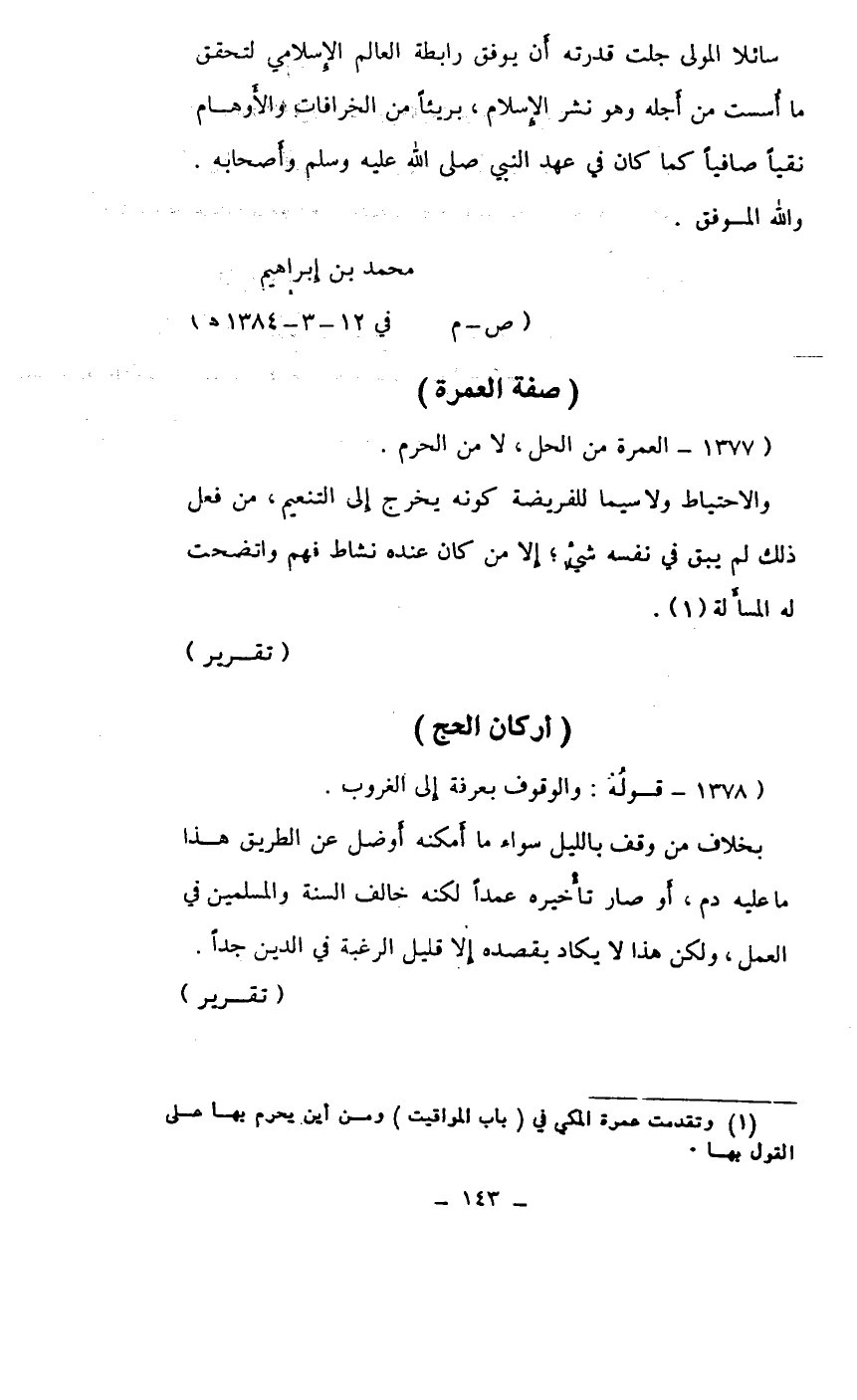 (1377 ـ العمرة من الحل، لا من الحرم)