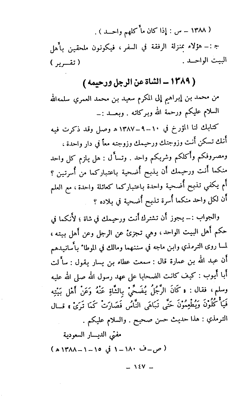 (1389 ـ الشاة عن الرجل ورحيمه)