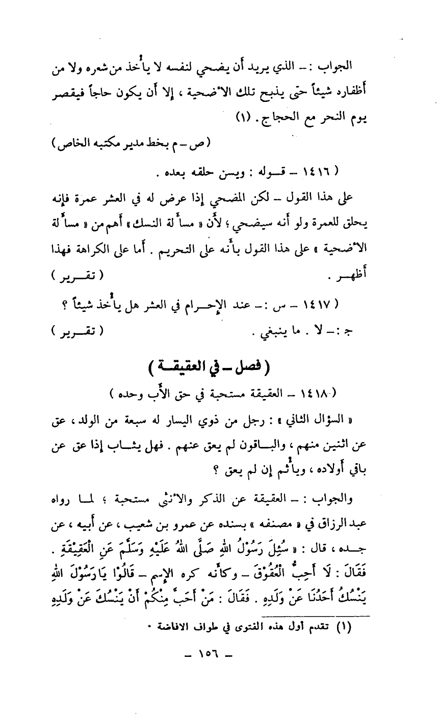 (1418 ـ العقيقة مستحبة في حق الأب وحده)