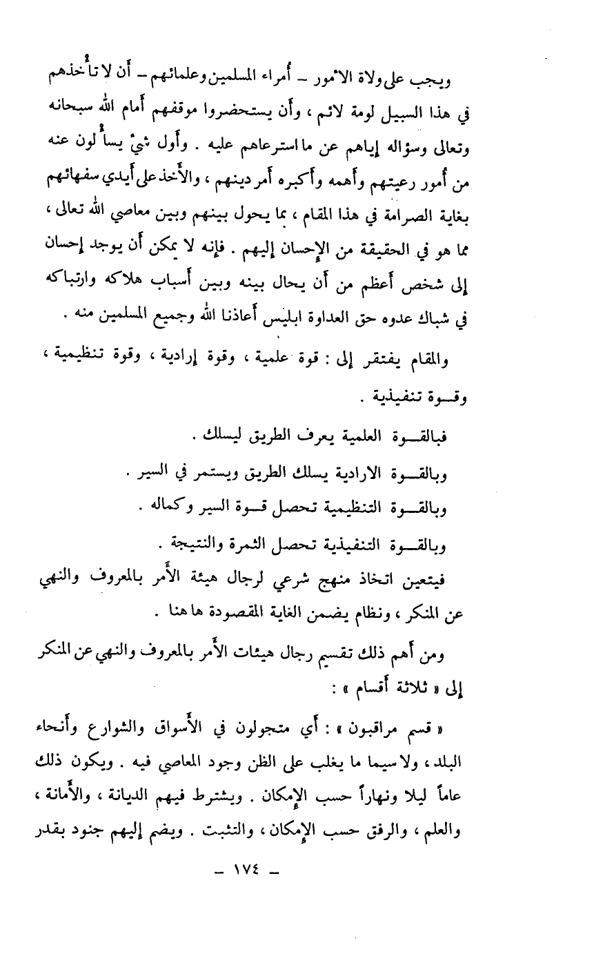 والمقام يفتقر إلى: قوة علمية، وقوة إرادية، وقوة تنظيمية، وقوة تنفيذية.
