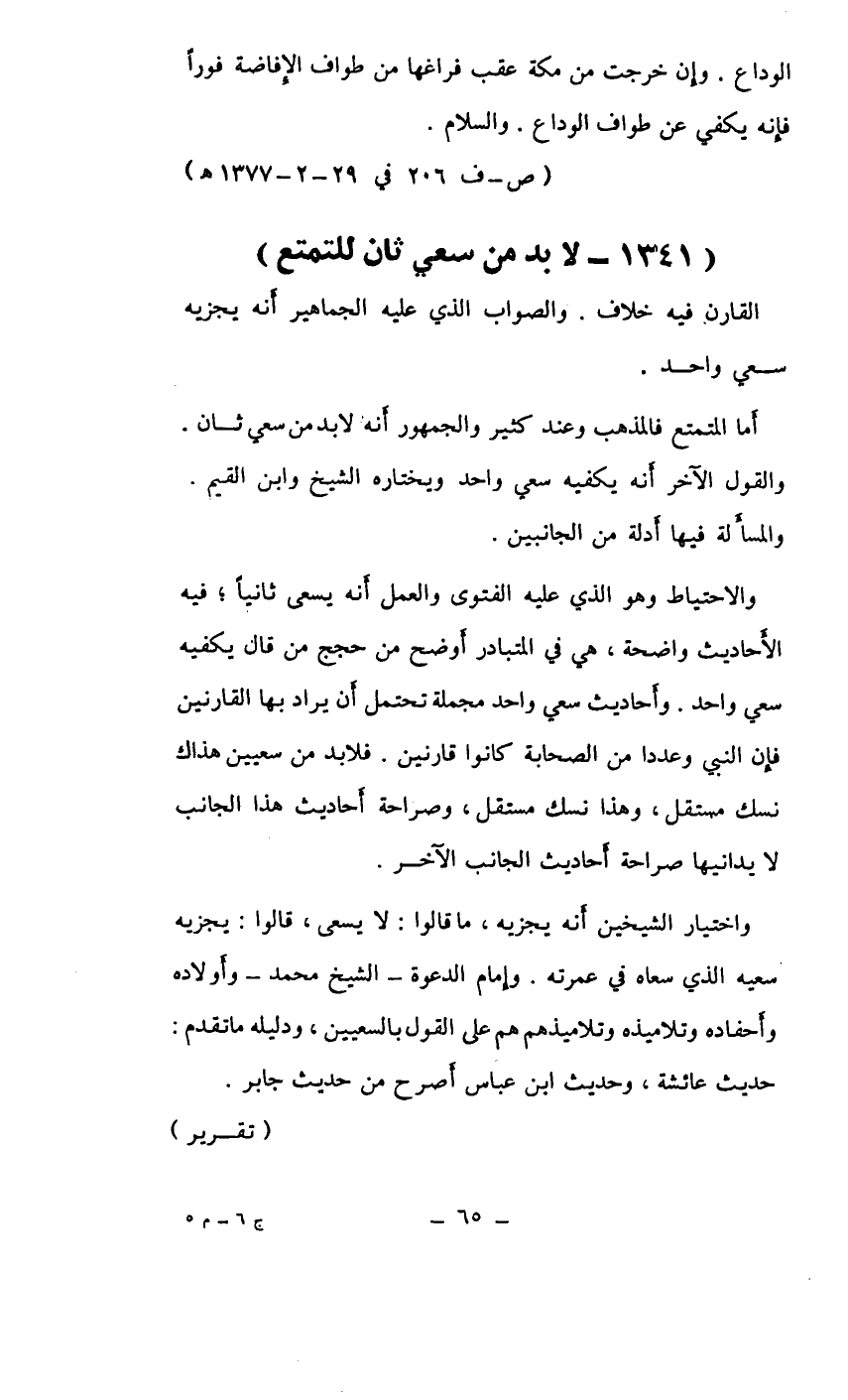 (1341 ـ لا بد من سعي ثان للتمتع)