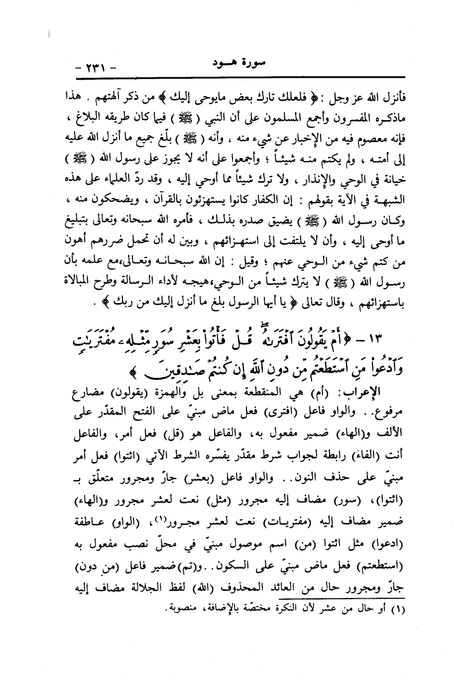 (2) أو مفعول فيه لأنه نائب عن الظرف أي زمانا قليلا.. ولا يصحّ استثناؤه من ضمير الفاعل في يؤمنون لأن هؤلاء قد طبع على قلوبهم، وقد يصح استثناؤه من الضمير في (عليها) .