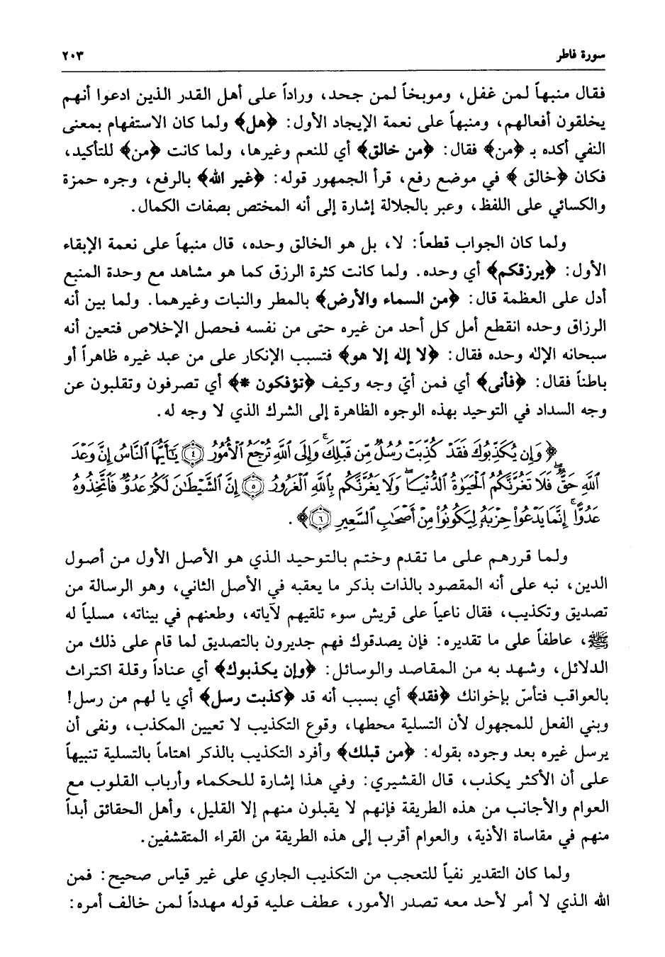 ) وَإِن يُكَذِّبُوكَ فَقَدْ كُذِّبَتْ رُسُلٌ مِّن قَبْلِكَ وَإِلَى اللَّهِ تُرْجَعُ الأُمُورُ يأَيُّهَا النَّاسُ إِنَّ وَعْدَ اللَّهِ حَقٌّ فَلاَ تَغُرَّنَّكُمُ الْحَيَاةُ الدُّنْيَا وَلاَ يَغُرَّنَّكُمْ بِاللَّهِ الْغَرُورُ إِنَّ الشَّيْطَانَ لَكُمْ عَدُوٌّ فَاتَّخِذُوهُ عَدُوّاً إِنَّمَا يَدْعُو حِزْبَهُ لِيَكُونُواْ مِنْ أَصْحَابِ السَّعِيرِ ( ( )