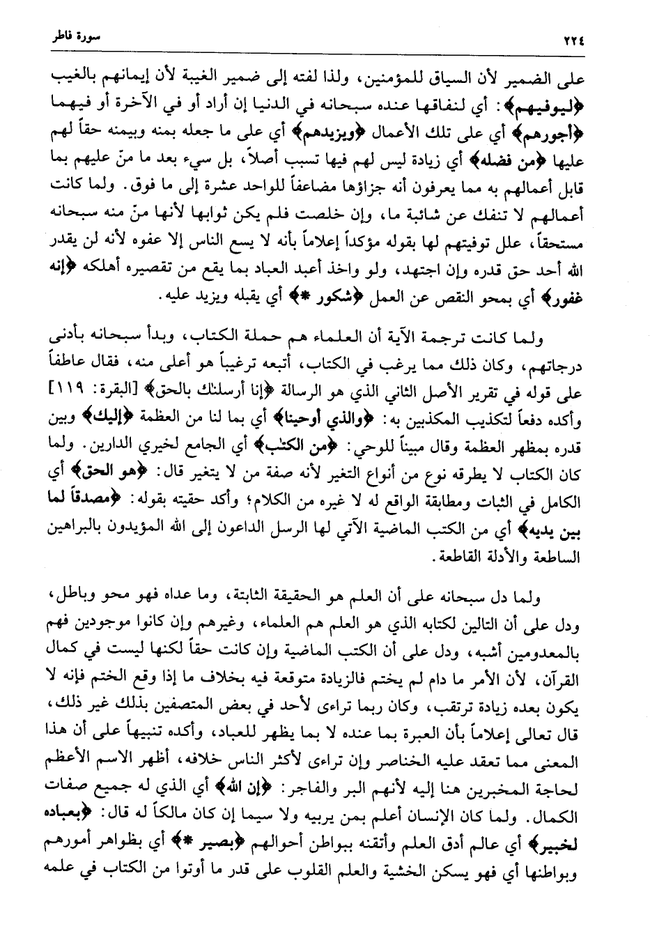 ولما دل سبحانه على أن العلم هو الحقيقة الثابتة ، وما عداه فهو محو وباطل ، ودل على أن التالين لكتابه الذي هو العلم هم العلماء ، وغيرهم وإن كانوا موجودين فهم بالمعدومين أشبه ، ودل على أن الكتب الماضية وإن كانت حقاً لكنها ليست في كمال القرآن ، لأن الأمر ما دام لم يختم فالزيادة متوقعة فيه بخلاف ما إذا وقع الختم فإنه لا يكون بعده زيادة ترتقب ، وكان ربما تراءى لأحد في بعض المتصفين بذلك غير ذلك ، قال تعالى إعلاماً بأن العبرة بما عنده لا بما يظهر للعباد ، وأكده تنبيهاً على أن هذا المعنى مما تعقد عليه الخناصر وإن تراءى لأكثر الناس خلافه ، أظهر الاسم الأعظم لحاجة المخبرين هنا إليه لأنهم البر والفاجر : ( إن الله ) أي الذي له جميع صفات الكمال .
