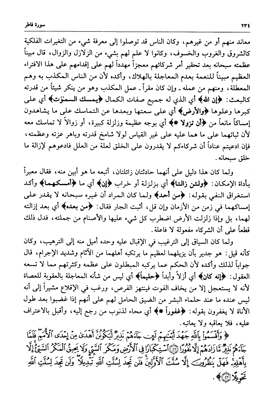 ) وَأَقْسَمُواْ بِاللَّهِ جَهْدَ أَيْمَانِهِمْ لَئِن جَآءَهُمْ نَذِيرٌ لَّيَكُونُنَّ أَهْدَى مِنْ إِحْدَى الأُمَمِ فَلَمَّا جَآءَهُمْ نَذِيرٌ مَّا زَادَهُمْ إِلاَّ نُفُوراً اسْتِكْبَاراً فِي الأَرْضِ وَمَكْرَ السَّيِّىءِ وَلاَ يَحِيقُ الْمَكْرُ السَّيِّىءُ إِلاَّ بِأَهْلِهِ فَهَلْ يَنظُرُونَ إِلاَّ سُنَّةَ آلأَوَّلِينَ فَلَن تَجِدَ لِسُنَّةِ اللَّهِ تَبْدِيلاً وَلَن تَجِدَ لِسُنَّةِ اللَّهِ تَحْوِيلاً ( ( )
