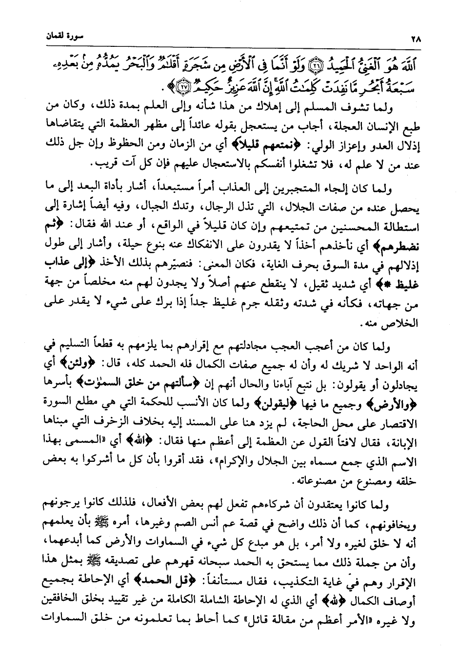 اللَّهَ هُوَ الْغَنِيُّ الْحَمِيدُ وَلَوْ أَنَّمَا فِي الأَرْضِ مِن شَجَرَةٍ أَقْلاَمٌ وَالْبَحْرُ يَمُدُّهُ مِن بَعْدِهِ سَبْعَةُ أَبْحُرٍ مَّا نَفِدَتْ كَلِمَاتُ اللَّهِ إِنَّ اللَّهَ عَزِيزٌ حَكِيمٌ ) 73