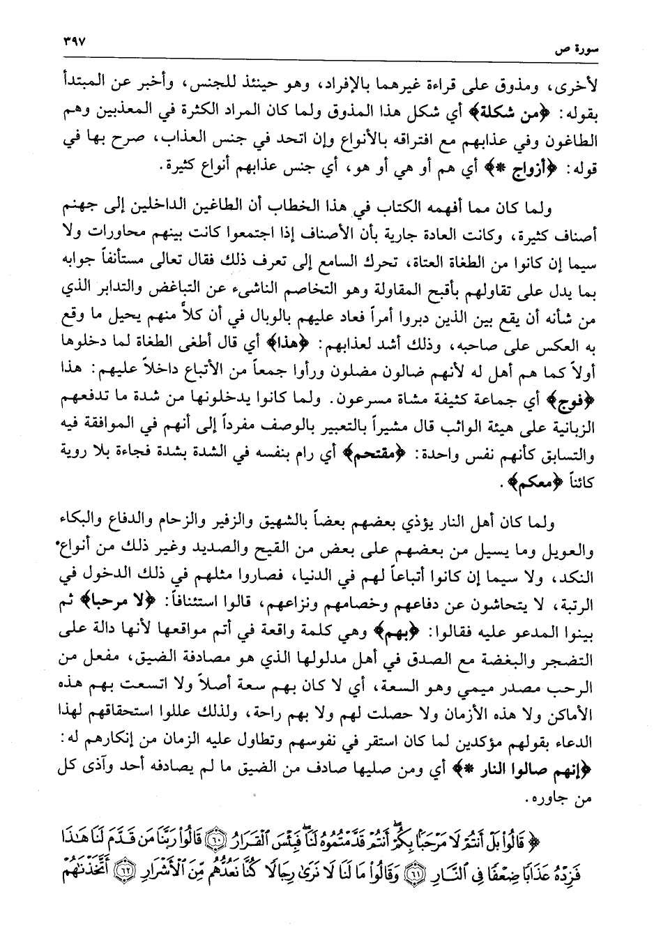 ) قَالُواْ بَلْ أَنتُمْ لاَ مَرْحَباً بِكُمْ أَنتُمْ قَدَّمْتُمُوهُ لَنَا فَبِئْسَ الْقَرَارُ قَالُواْ رَبَّنَا مَن قَدَّمَ لَنَا هَذَا فَزِدْهُ عَذَاباً ضِعْفاً فِي النَّارِ وَقَالُواْ مَا لَنَا لاَ نَرَى رِجَالاً كُنَّا نَعُدُّهُمْ مِّنَ الأَشْرَارِ أَتَّخَذْنَاهُمْ