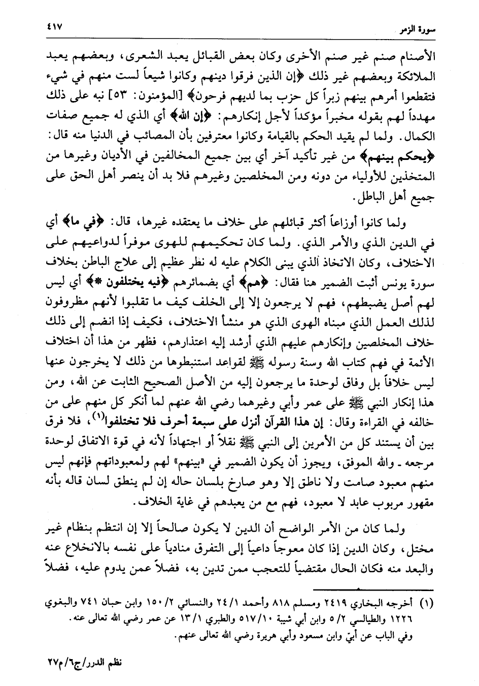 77 ( ) إن الذين فرقوا دينهم وكانوا شيعاً لست منهم في شيء فتقطعوا أمرهم بينهم زبراً كل حزب بما لديهم فرحون ( ) 7
