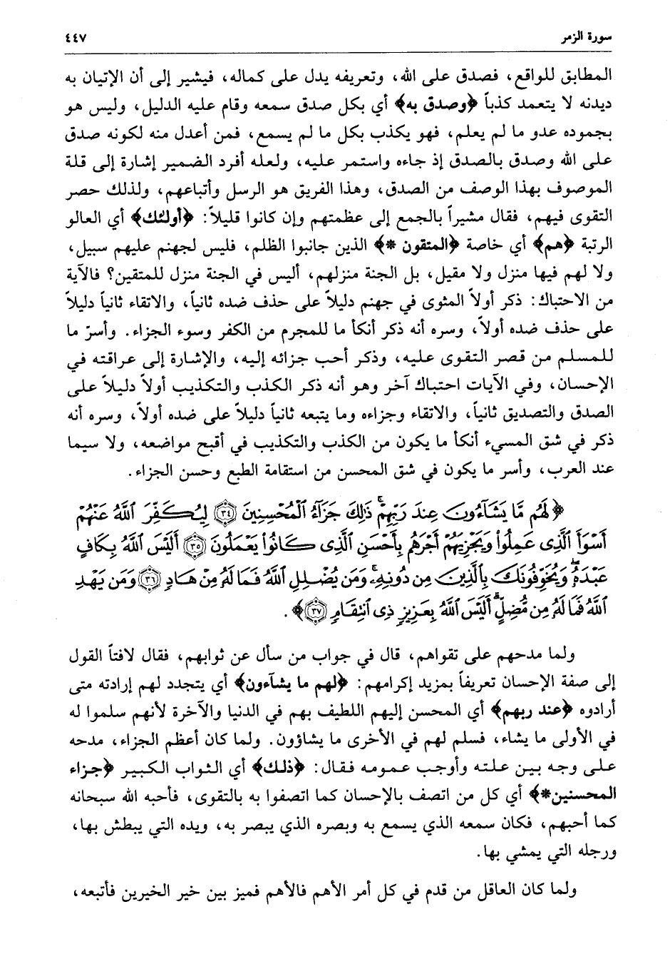 الزمر : ( 34 - 37 ) لهم ما يشاؤون. .. . .