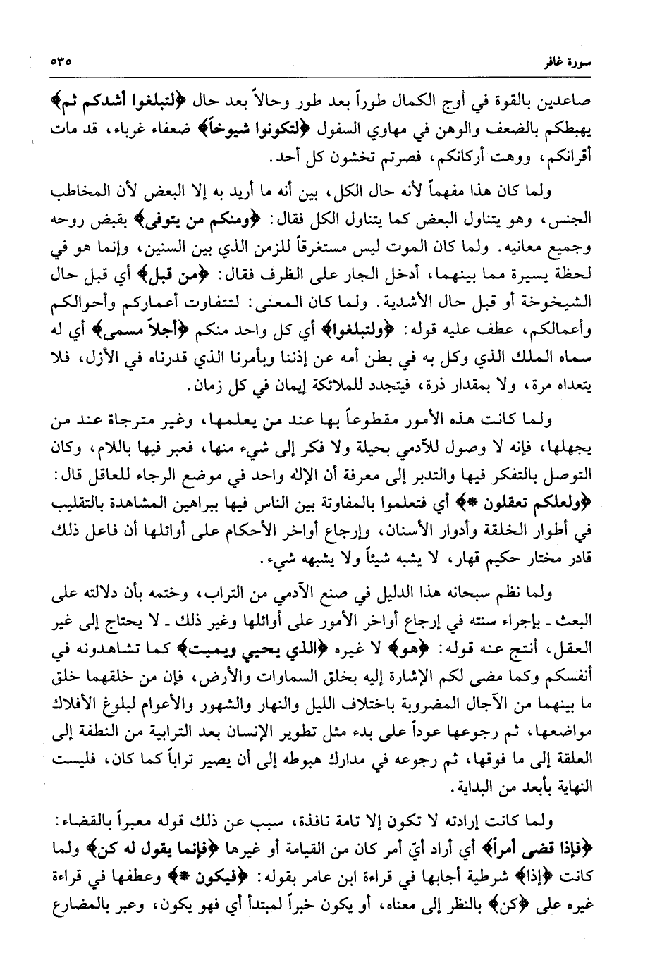 صاعدين بالقوة في أوج الكمال طوراً بعد طور وحالاً بعد حال ) لتبلغوا أشدكم ثم ( يهبطكم بالضعف والوهن في مهاوي السفول ) لتكونوا شيوخاً ( ضعفاء غرباء ، قد مات أقرانكم ، ووهت أركانكم ، فصرتم تخشون كل أحد .