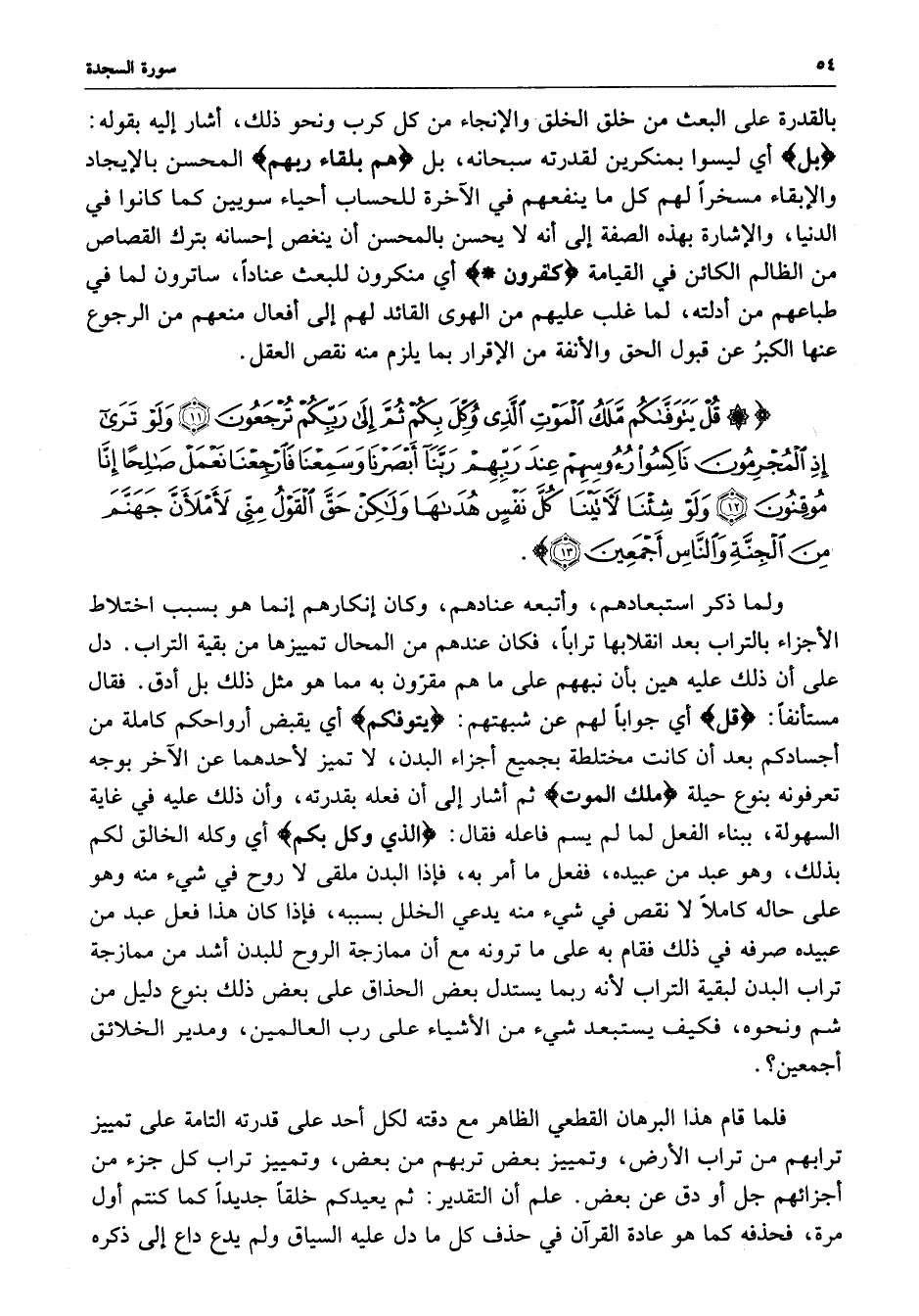 ) قُلْ يَتَوَفَّاكُم مَّلَكُ الْمَوْتِ الَّذِي وُكِّلَ بِكُمْ ثُمَّ إِلَى رَبِّكُمْ تُرْجَعُونَ وَلَوْ تَرَى إِذِ الْمُجْرِمُونَ نَاكِسُواْ رُءُوسِهِمْ عِندَ رَبِّهِمْ رَبَّنَآ أَبْصَرْنَا وَسَمِعْنَا فَارْجِعْنَا نَعْمَلْ صَالِحاً إِنَّا مُوقِنُونَ وَلَوْ شِئْنَا لآتَيْنَا كُلَّ نَفْسٍ هُدَاهَا وَلَكِنْ حَقَّ الْقَوْلُ مِنِّي لأَمْلأَنَّ جَهَنَّمَ مِنَ الْجِنَّةِ وَالنَّاسِ أَجْمَعِينَ ( ( )