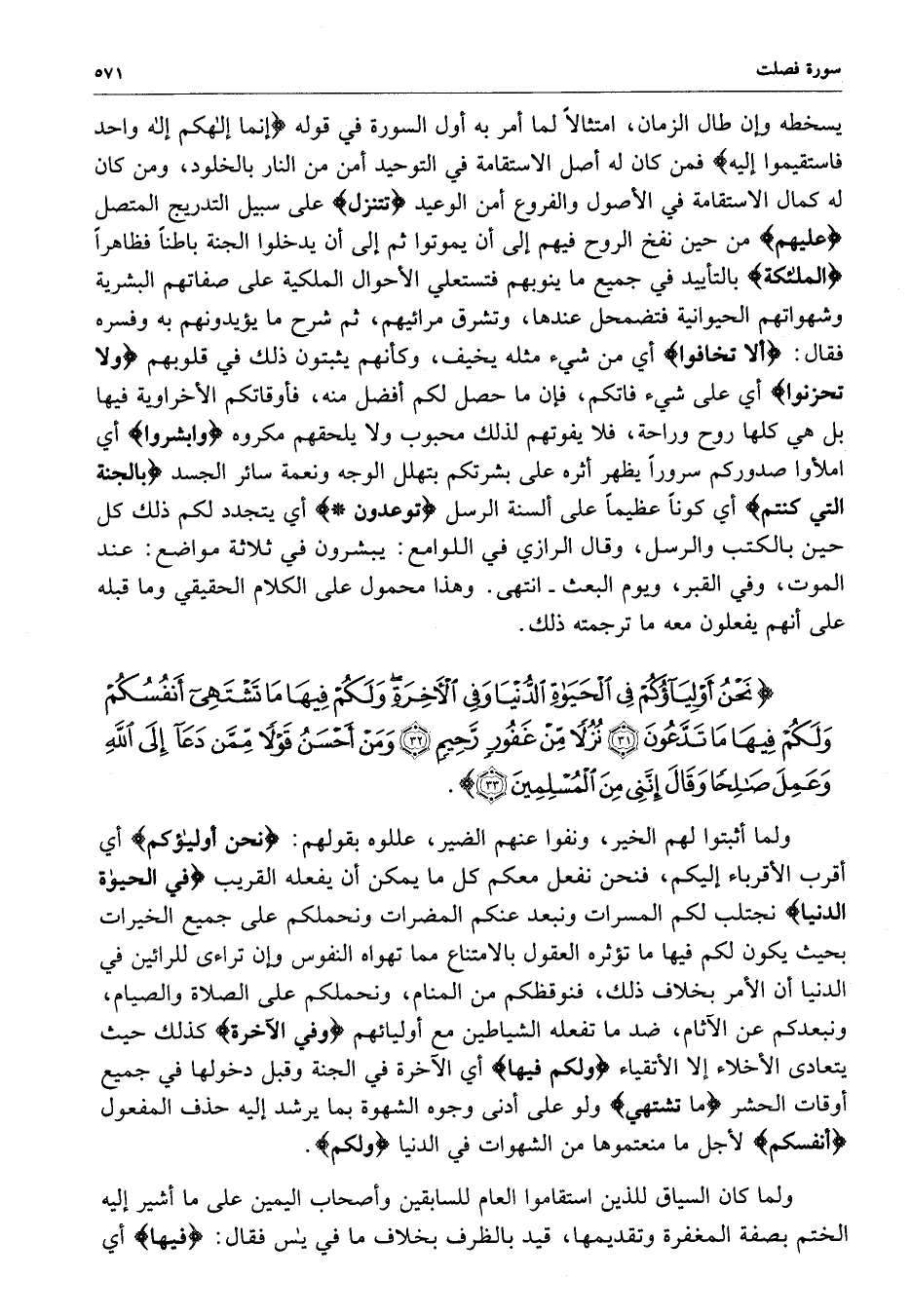 ) نَحْنُ أَوْلِيَآؤُكُمْ فِي الْحَيَاةِ الدُّنْيَا وَفِي الآخِرَةِ وَلَكُمْ فِيهَا مَا تَشْتَهِي أَنفُسُكُمْ وَلَكُمْ فِيهَا مَا تَدَّعُونَ نُزُلاً مِّنْ غَفُورٍ رَّحِيمٍ وَمَنْ أَحْسَنُ قَوْلاً مِّمَّن دَعَآ إِلَى اللَّهِ وَعَمِلَ صَالِحاً وَقَالَ إِنَّنِي مِنَ الْمُسْلِمِينَ ( ( )