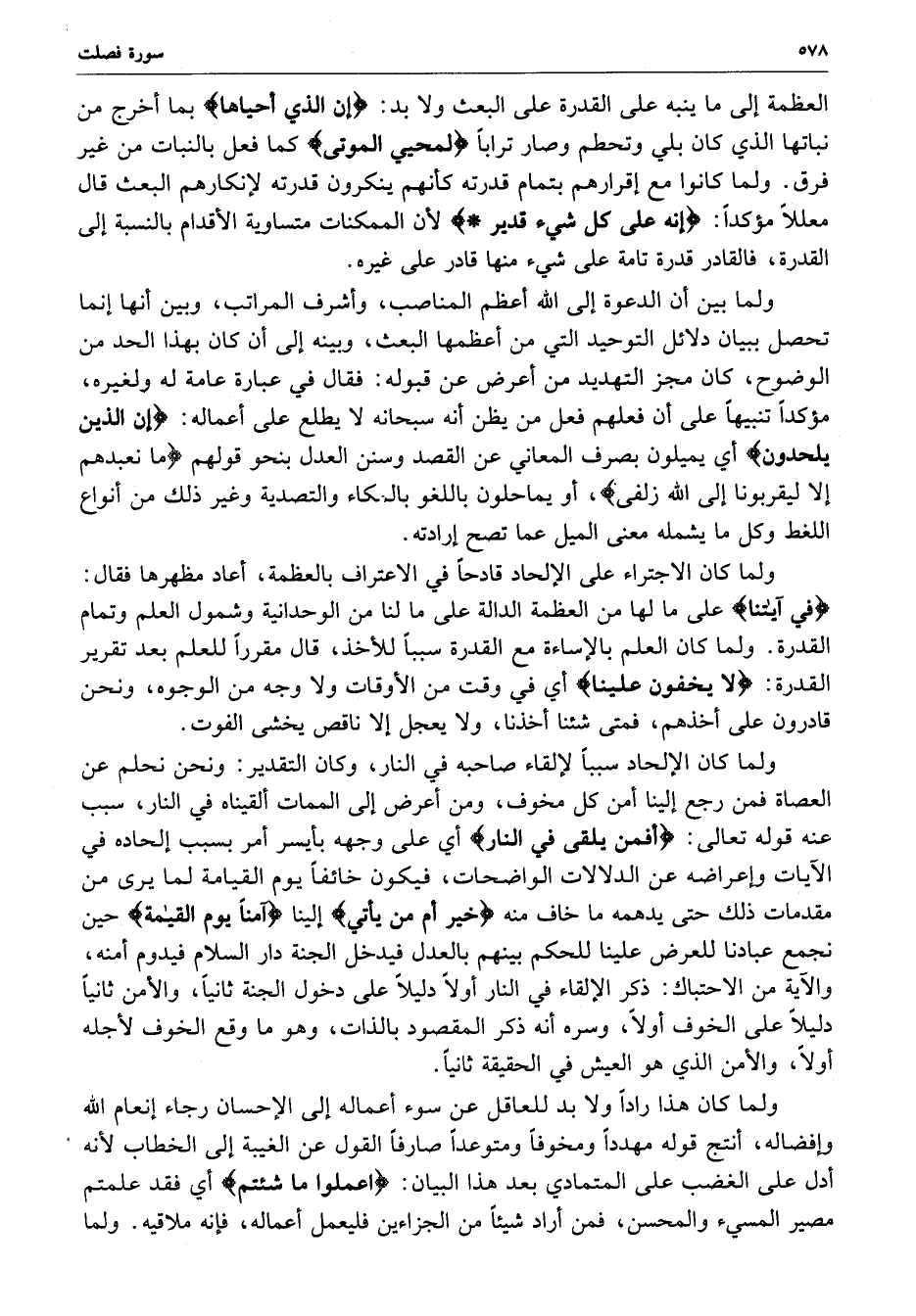 العظمة إلى ما ينبه على القدرة على البعث ولا بد : ( إن الذي أحياها ( بما أخرج من نباتها الذي كان بلي وتحطم وصار تراباً ) لمحيي الموتى ( كما فعل بالنبات من غير فرق .