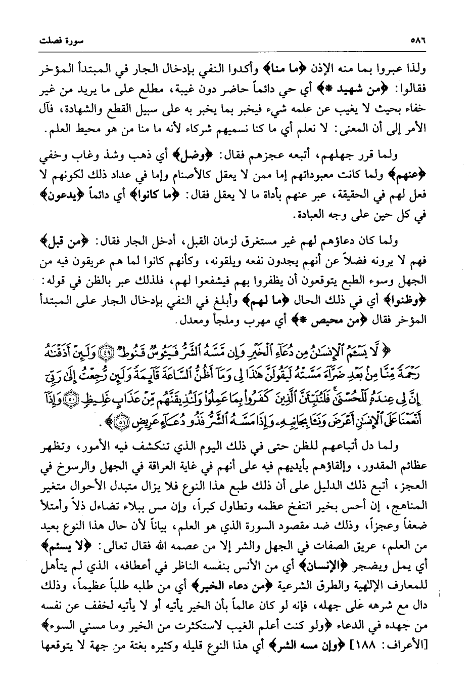 ) لاَّ يَسْأَمُ الإِنْسَانُ مِن دُعَآءِ الْخَيْرِ وَإِن مَّسَّهُ الشَّرُّ فَيَئُوسٌ قَنُوطٌ وَلَئِنْ أَذَقْنَاهُ رَحْمَةً مِّنَّا مِن بَعْدِ ضَرَّآءَ مَسَّتْهُ لَيَقُولَنَّ هَذَا لِي وَمَآ أَظُنُّ السَّاعَةَ قَآئِمَةً وَلَئِن رُّجِّعْتُ إِلَى رَبِّي إِنَّ لِي عِندَهُ لَلْحُسْنَى فَلَنُنَبِّئَنَّ الَّذِينَ كَفَرُواْ بِمَا عَمِلُواْ وَلَنُذِيقَنَّهُمْ مِّنْ عَذَابٍ غَلِيظٍ وَإِذَآ أَنْعَمْنَا عَلَى الإِنسَانِ أَعْرَضَ وَنَأَى بِجَانِبِهِ وَإِذَا مَسَّهُ الشَّرُّ فَذُو دُعَآءٍ عَرِيضٍ ( ( )
