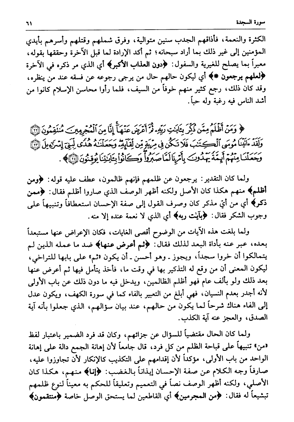 ) وَمَنْ أَظْلَمُ مِمَّن ذُكِّرَ بِآيَاتِ رَبِّهِ ثُمَّ أَعْرَضَ عَنْهَآ إِنَّا مِنَ الْمُجْرِمِينَ مُنتَقِمُونَ وَلَقَدْ آتَيْنَا مُوسَى الْكِتَابَ فَلاَ تَكُن فِي مِرْيَةٍ مِّن لِّقَآئِهِ وَجَعَلْنَاهُ هُدًى لِّبَنِي إِسْرَائِيلَ وَجَعَلْنَا مِنْهُمْ أَئِمَّةً يَهْدُونَ بِأَمْرِنَا لَمَّا صَبَرُواْ وَكَانُواْ بِآيَاتِنَا يُوقِنُونَ ( ( )