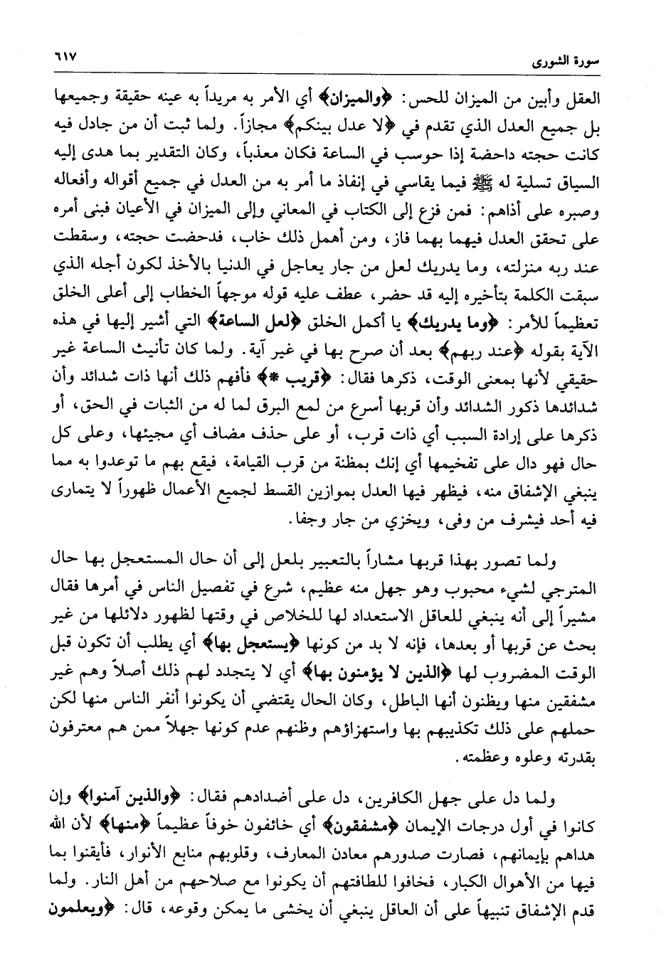 العقل وأبين من الميزان للحس : ( والميزان ) أي الأمر به مريداً به عينه حقيقة وجميعها بل جميع العدل الذي تقدم في ) لا عدل بينكم ( مجازاً .