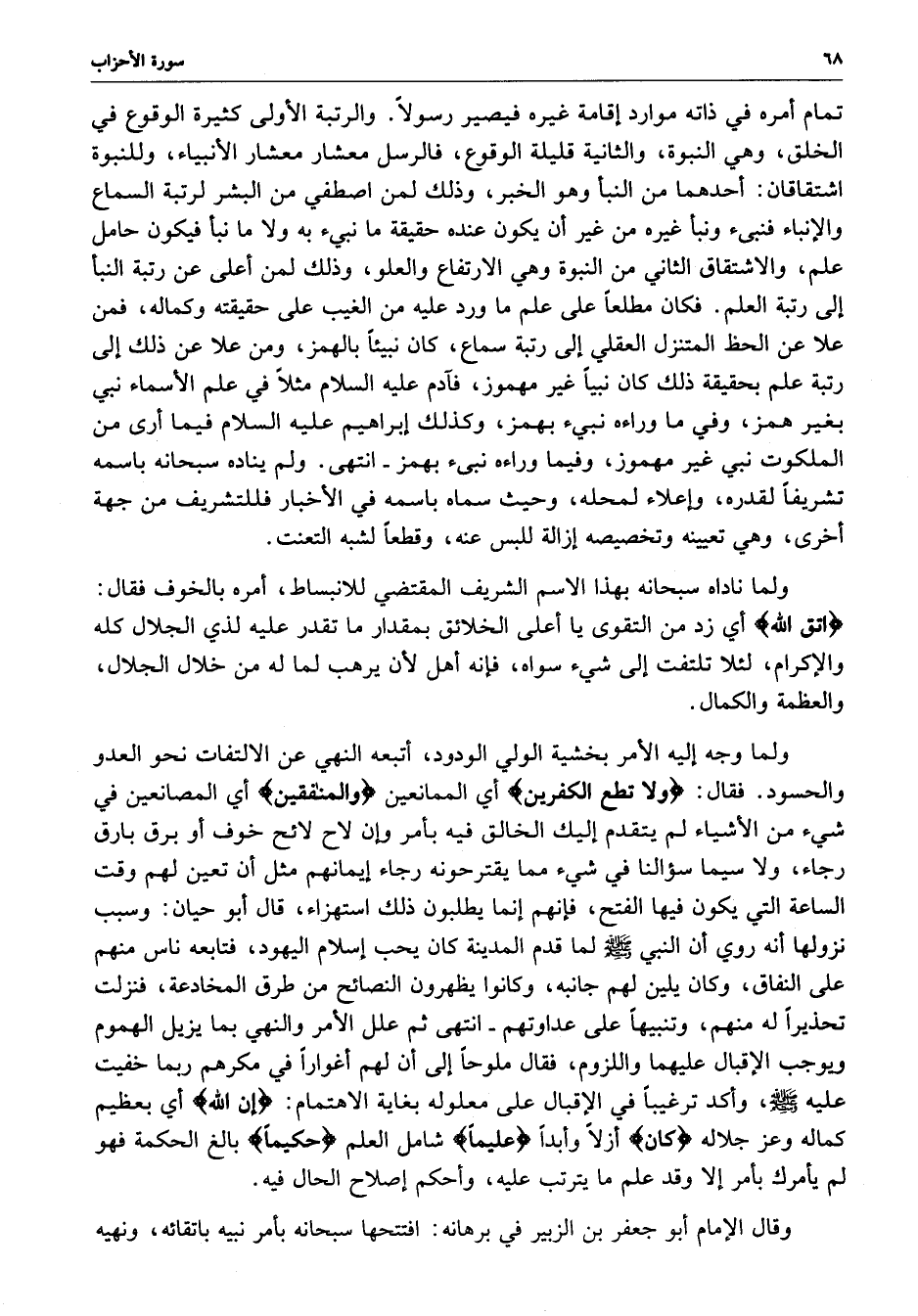 وقال الإمام أبو جعفر بن الزبير في برهانه : افتتحها سبحانه بأمر نبيه باتقائه ، ونهيه