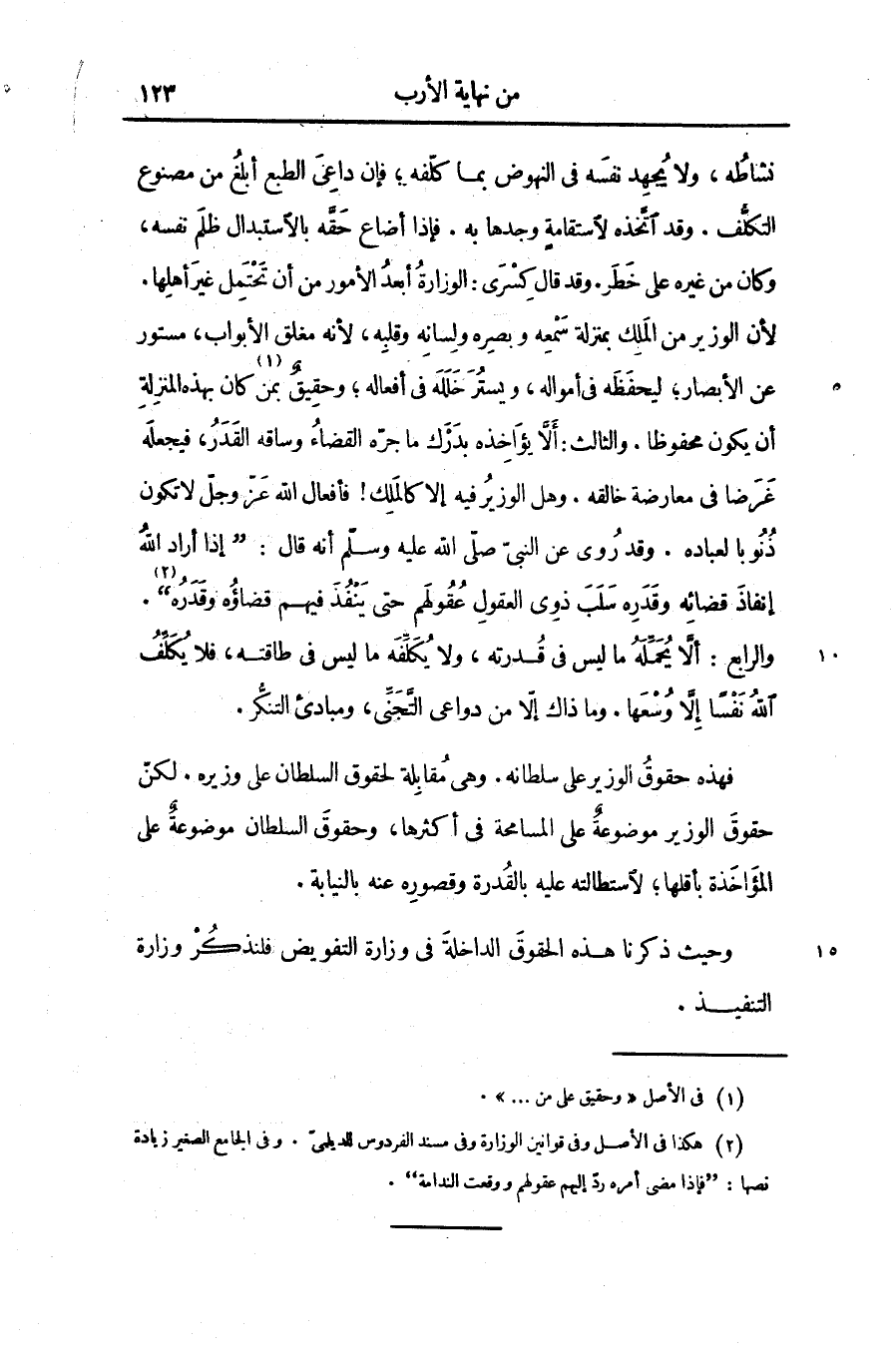 فهذه حقوق الوزير على سلطانه. وهى مقابلة لحقوق السلطان على وزيره. لكنّ حقوق الوزير موضوعة على المسامحة فى أكثرها، وحقوق السلطان موضوعة على المؤاخذة بأقلها؛ لاستطالته عليه بالقدرة وقصوره عنه بالنيابة.