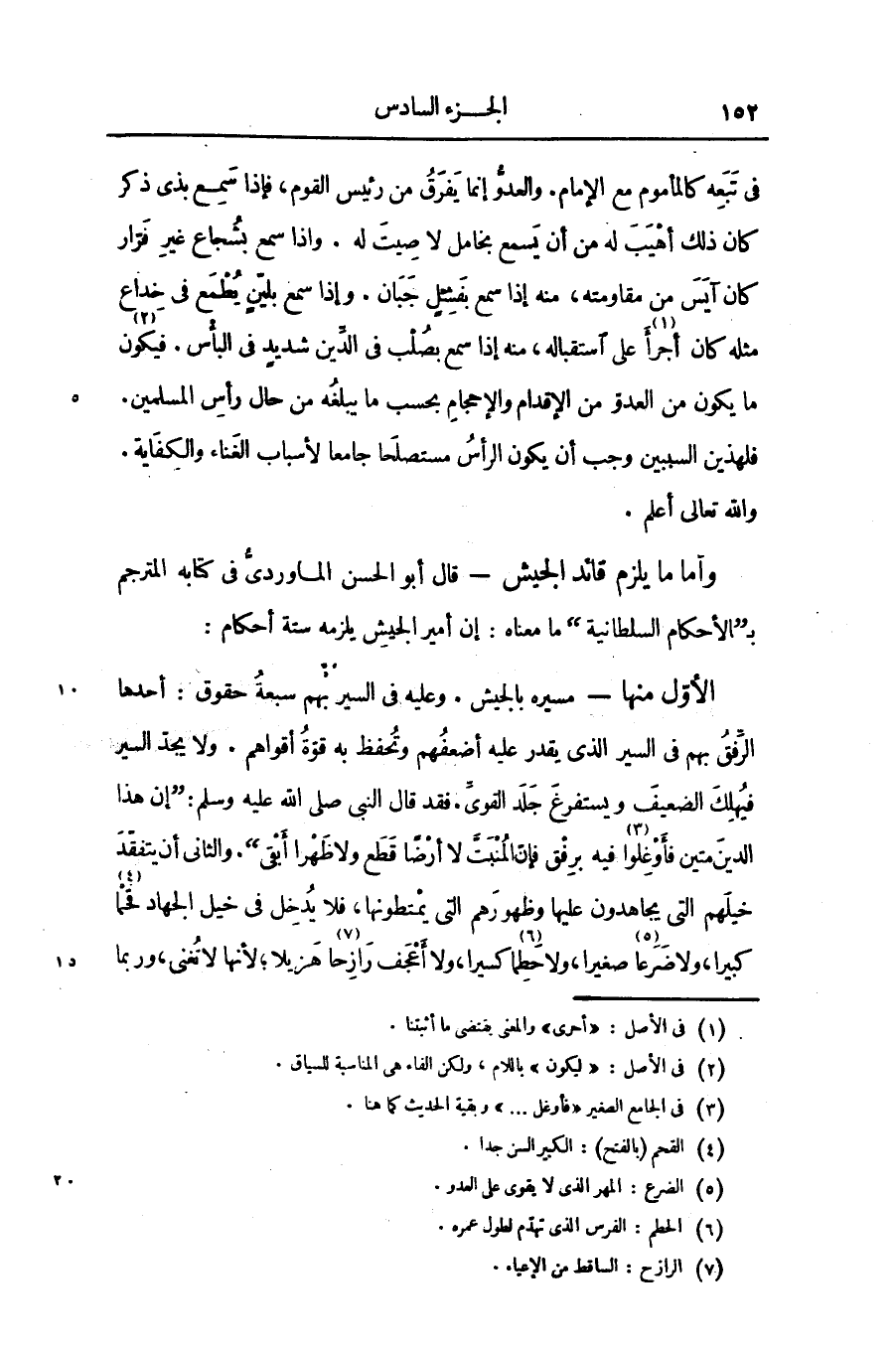 واما ما يلزم قائد الجيش- قال أبو الحسن الماوردىّ فى كتابه المترجم ب «الأحكام السلطانية» ما معناه: إن أمير الجيش يلزمه ستة أحكام:
