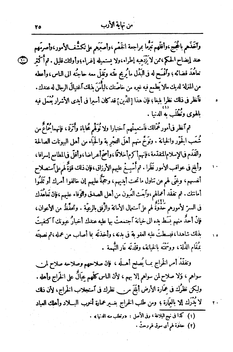 وليكن نظرك فى عمارة الأرض أبلغ من نظرك فى استجلاب الخراج، لأن ذلك لا يدرك إلا بالعمارة؛ ومن طلب الخراج بغير عمارة أخرب البلاد وأهلك العباد