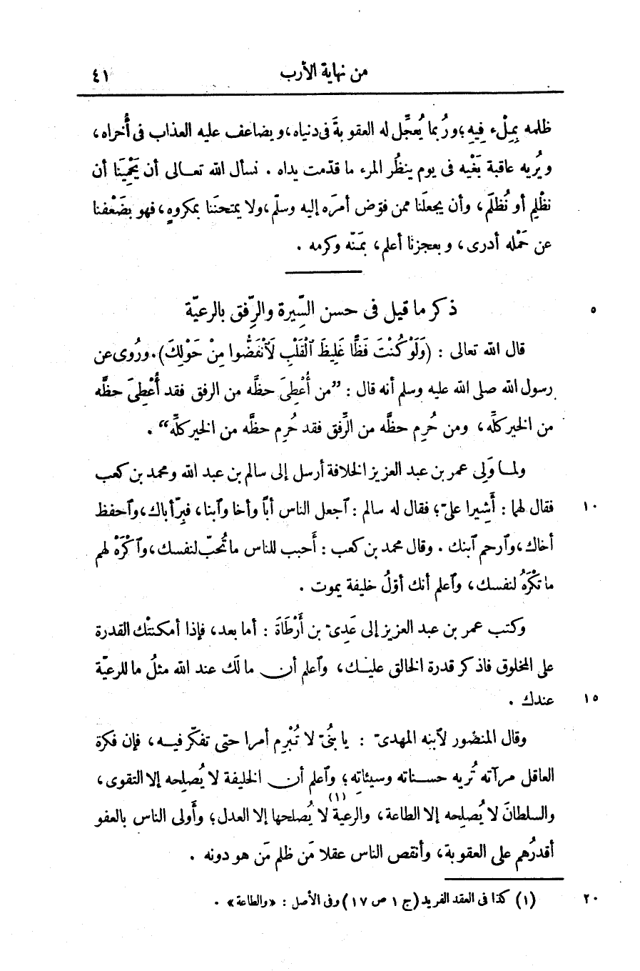 [1] كذا فى العقد الفريد (ج 1 ص 17) وفى الأصل: «والطاعة» .