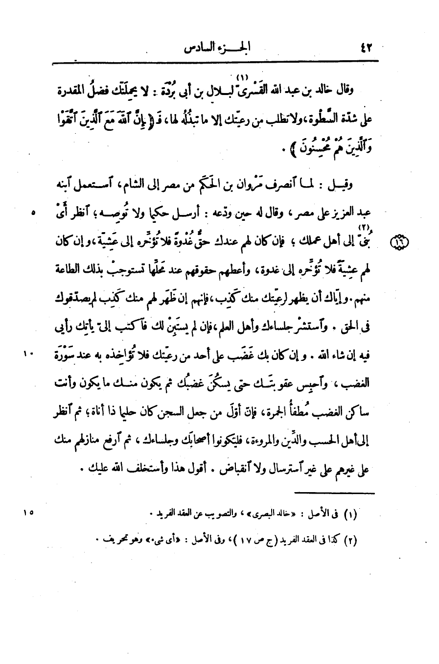 [1] فى الأصل: «خالد البصرى» والتصويب عن العقد الفريد.