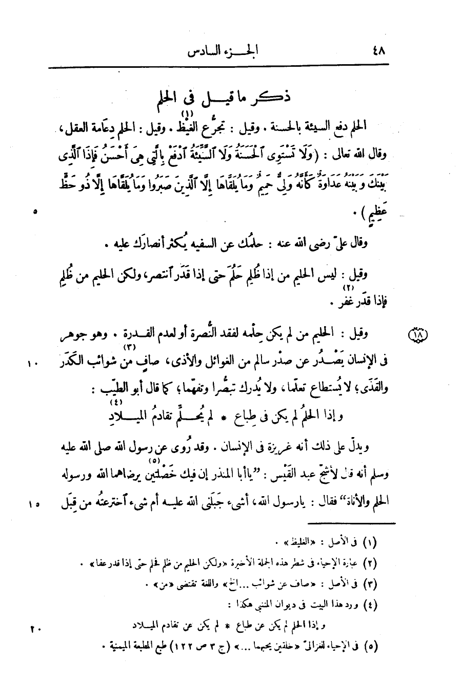 [2] عبارة الإحياء فى شطر هذه الجملة الأخيرة «ولكن الحليم من ظلم فحلم حتى إذا قدر عفا» .