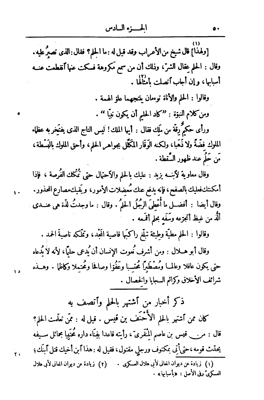 ولهذا [1]] قال شيخ من الأعراب وقد قيل له: ما الحلم؟ فقال: الذى تصبر عليه.