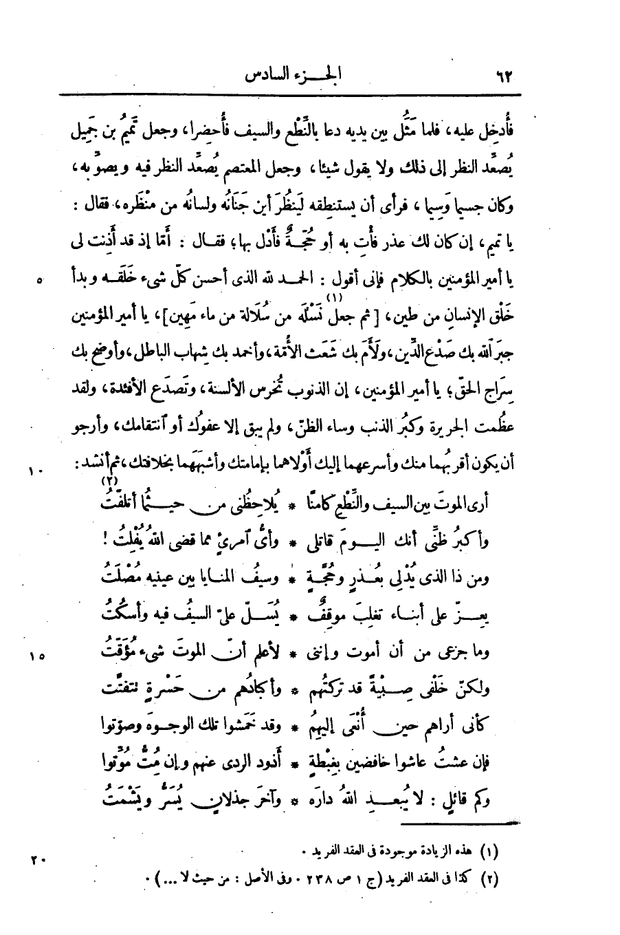 [2] كذا فى العقد الفريد (ج 1 ص 238. وفى الأصل: من حيث لا ... ) .
