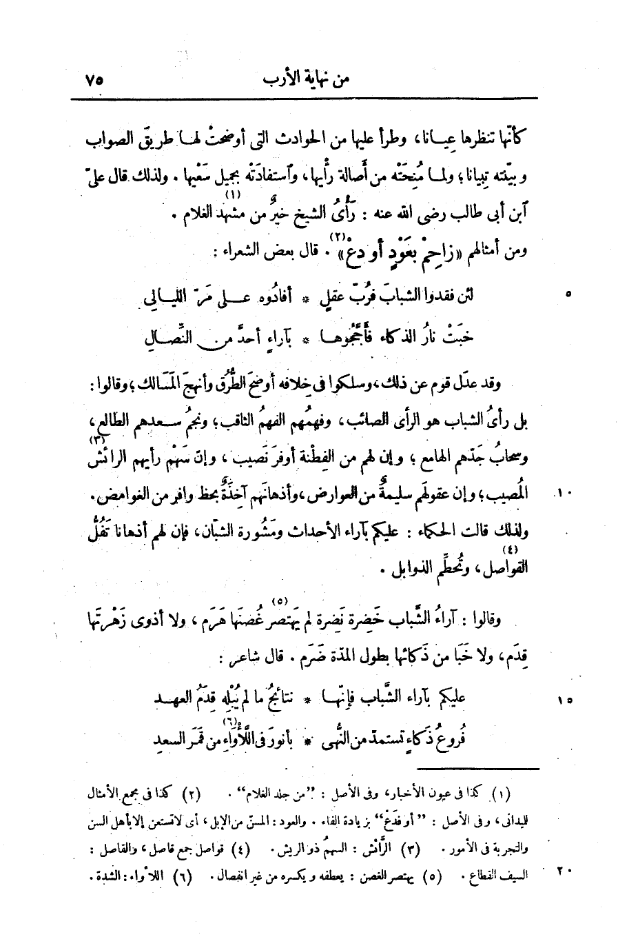بل رأى الشباب هو الرأى الصائب، وفهمهم الفهم الثاقب؛ ونجم سعدهم الطالع، وسحاب جدّهم الهامع؛ وإن لهم من الفطنة أوفر نصيب، وإنّ سهم رأيهم الرائش [3] المصيب؛ وإن عقولهم سليمة من العوارض، وأذهانهم آخذة بحظ وافر من الغوامض.